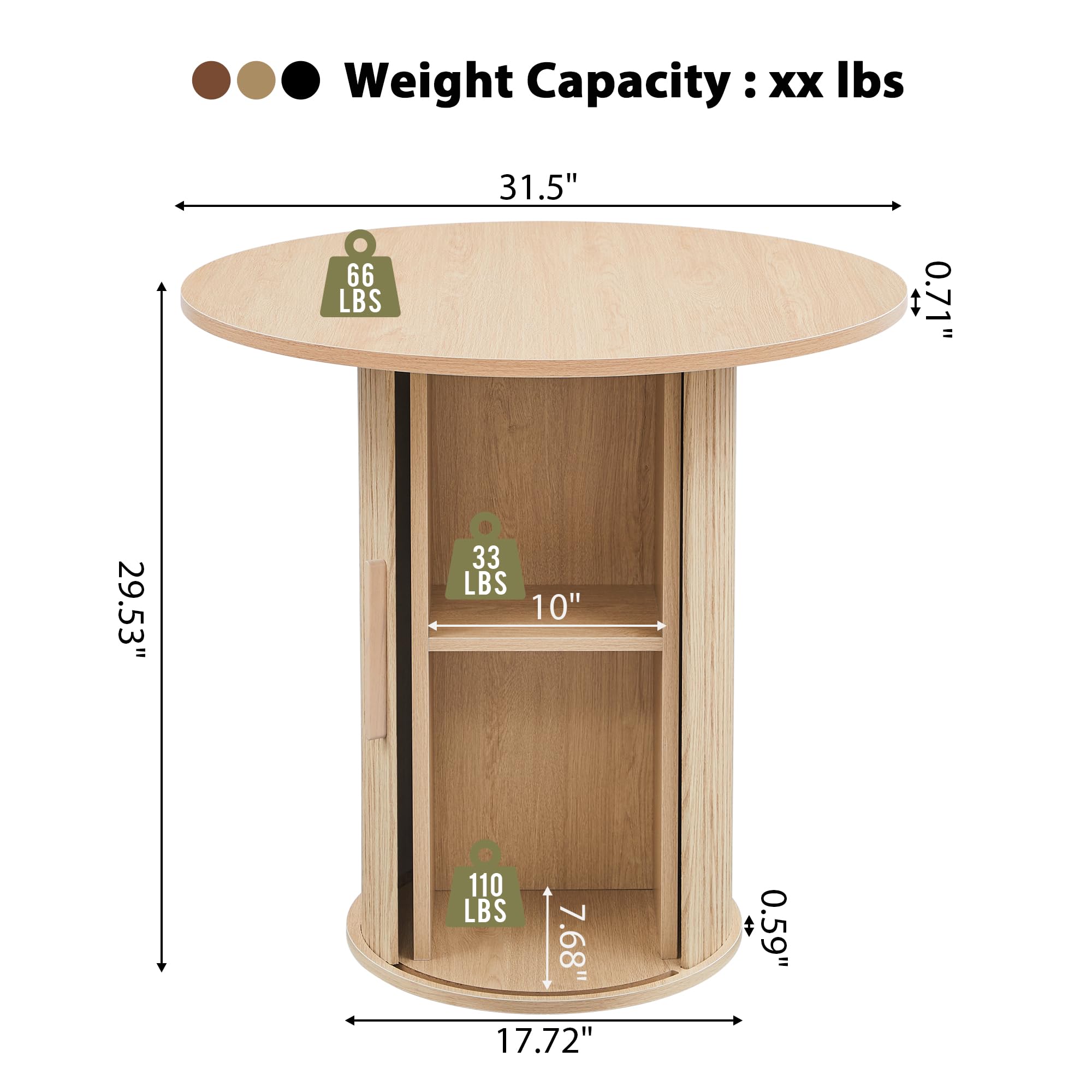 Mesa de comedor redonda de 31.5 pulgadas para 2-4, mesa de cocina moderna de granja con estante de almacenamiento de 2 niveles, pequeñas mesas de comedor circulares de madera con base estriada para el hogar, comedor, sala de estar (natural)