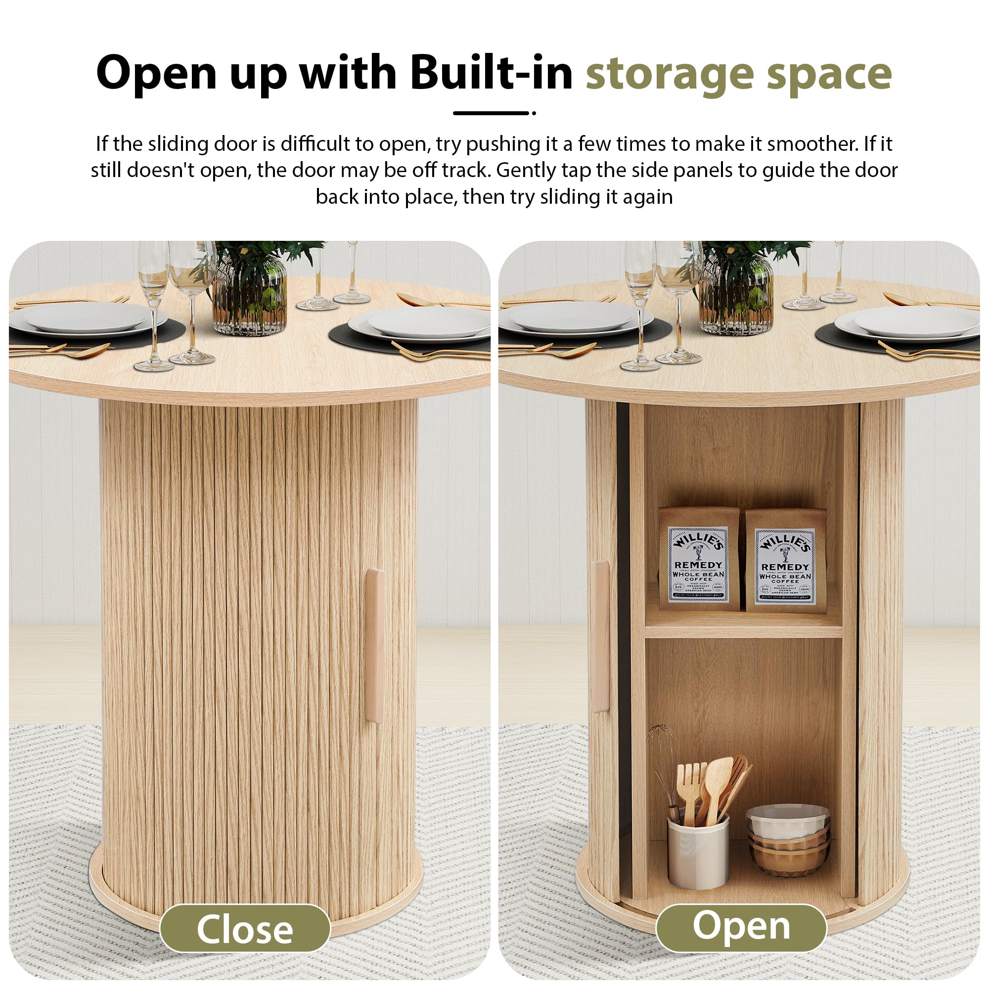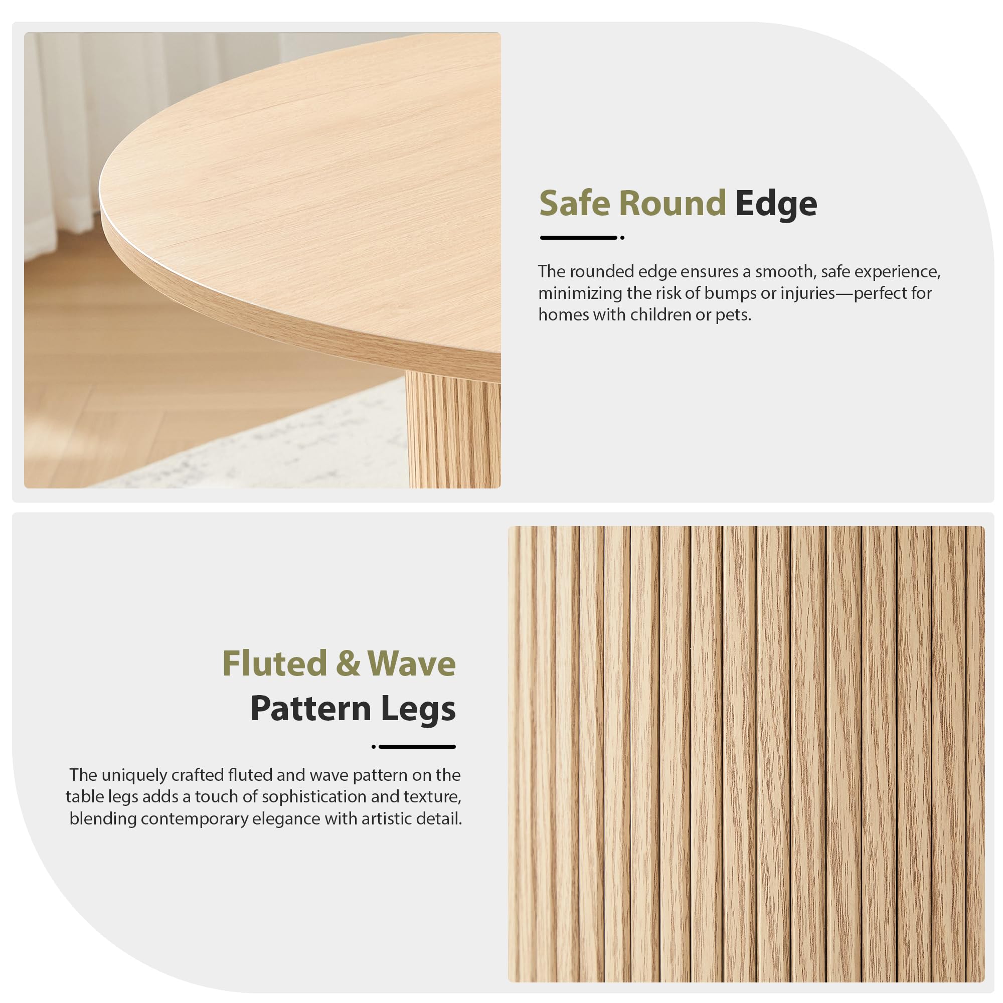 -【Sturdy Fluted Pedestal Base】Supported by a metal frame and fluted wood strip pedestal, this small circle dining table provides both style and strength. The mid-century inspired wood strip base ensures long-lasting durability while adding a decorative, sculptural touch to any home or living room setting.