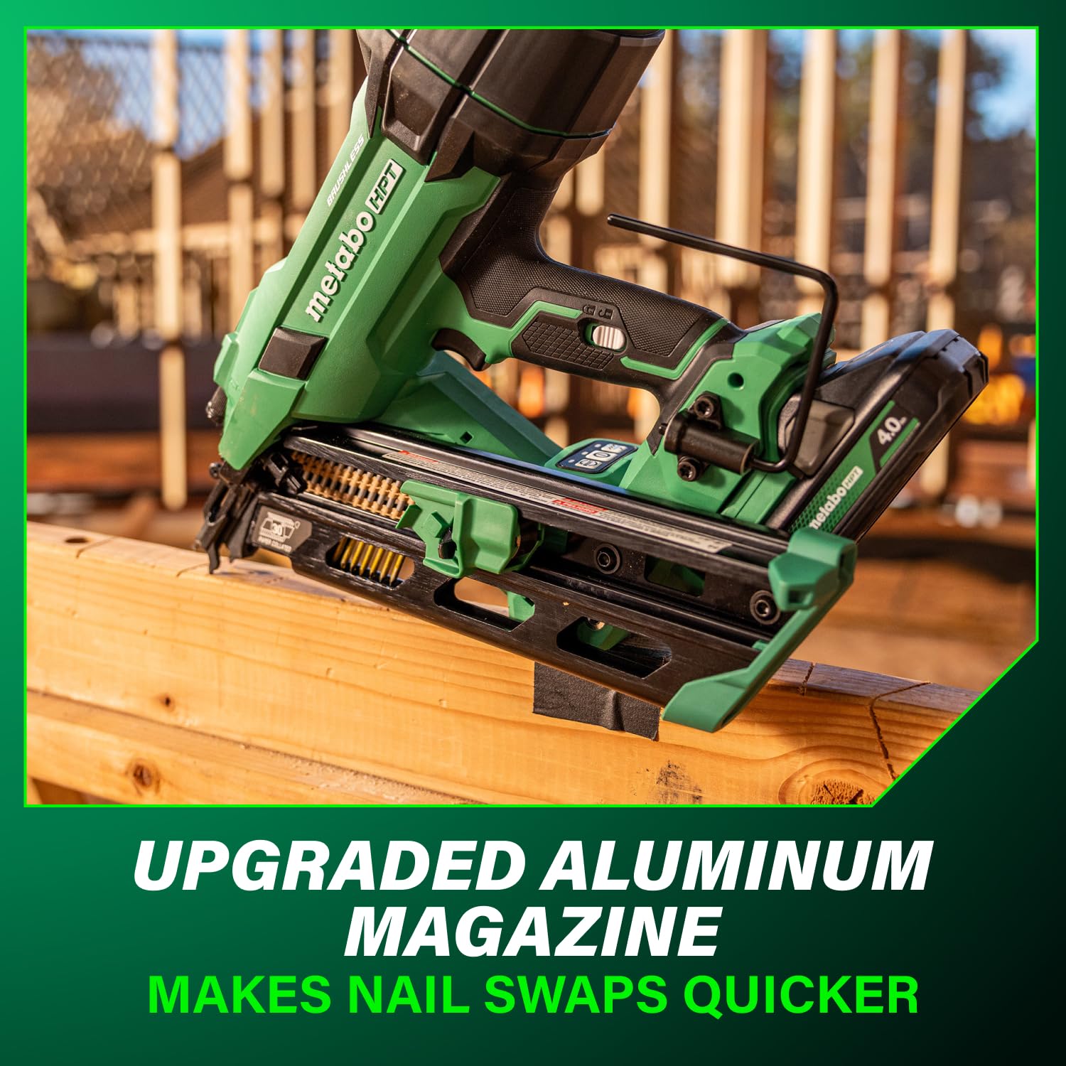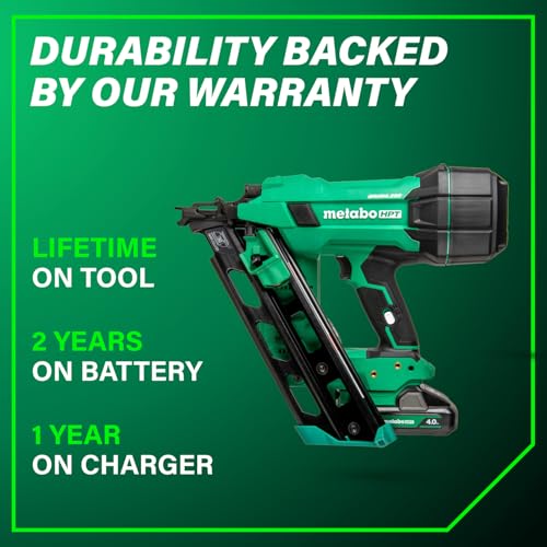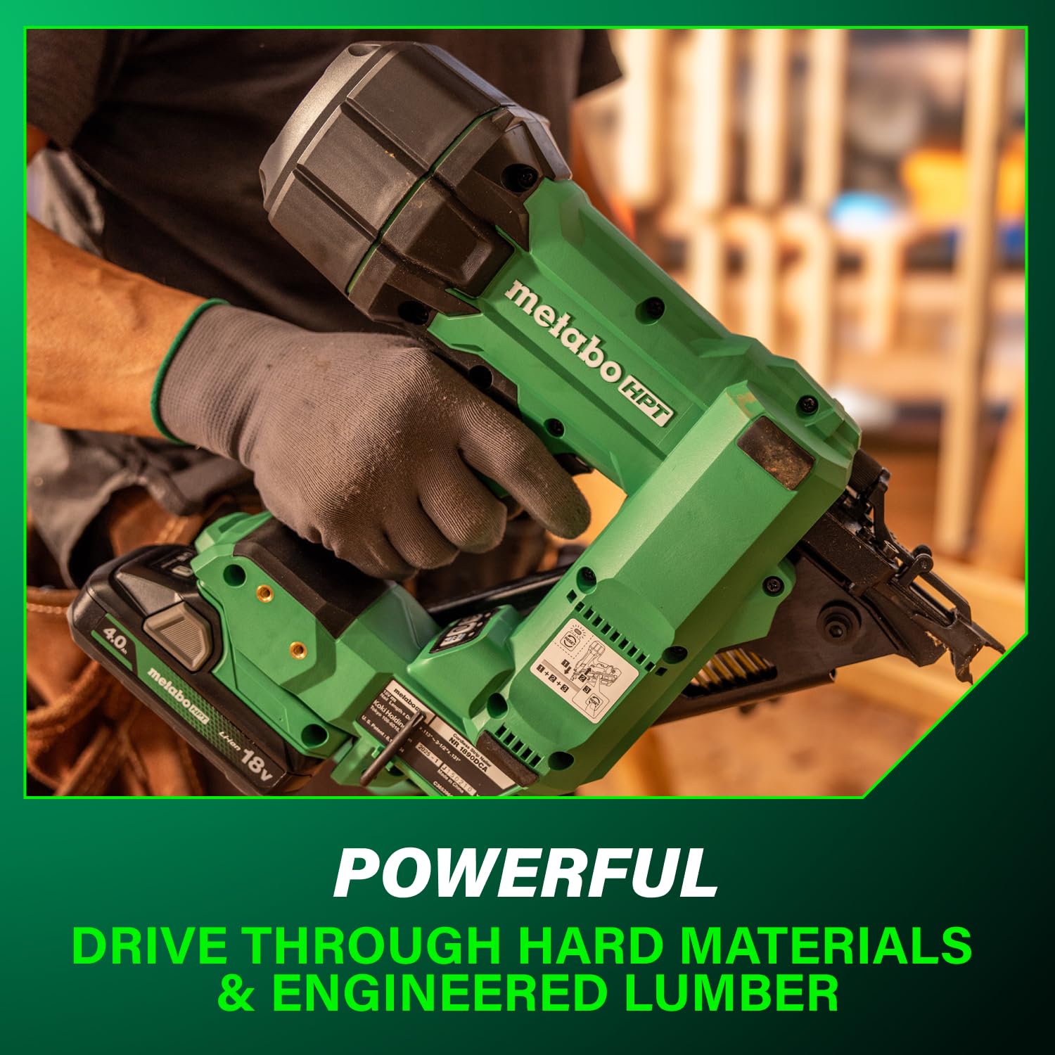 " INTRODUCING THE METABO HPT 18V MULTIVOLT CORDLESS 30° PAPER TAPE FRAMING NAILER KIT The Metabo HPT Cordless Framing Nailer is the ultimate tool for heavy-duty construction tasks. Combining power, efficiency, and user-friendly design, this 30-degree framing nailer is ideal for professionals seeking superior performance without the hassle of cords or compressors. This cordless framing nailer comes with the Metabo HPT lifetime tool body warranty, 2-year lithium ion battery warranty, 1-year charger warranty POWERFUL, EFFICIENT, AND BUILT TO LAST This cordless framing nailer is powered by brushless motor technology, ensuring a longer runtime and increased durability. Capable of driving 2"" to 3-1/2"" paper tape collated nails at a speed of up to 3 nails per second with no ramp-up time, it guarantees high efficiency for a wide range of applications. The air spring drive system mimics the performance of pneumatic tools, delivering consistent power and precision. ERGONOMIC AND VERSATILE DESIGN The Metabo HPT cordless nailer features tool-less depth adjustment for precise nailing and a selective actuation switch that allows seamless transitions between sequential and bump fire modes. Weighing only 8.2 lbs (without battery), its compact size makes it easy to use in tight spaces, while the cordless design increases job site productivity. COMPLETE FRAMING NAILER KIT FOR EXTENDED PERFORMANCE This kit includes everything you need for uninterrupted operation: (1) 4.0Ah Lithium Ion battery with a fuel gauge, capable of driving up to 500 nails per charge, (1) Charger, (1) Durable carrying bag. CHOOSE METABO HPT FOR PROFESSIONAL-GRADE RELIABILITY Metabo HPT power tools are engineered for durability, safety, and performance. With a legacy of quality craftsmanship, Metabo HPT tools are trusted by professionals and DIY enthusiasts alike. Discover our full range of innovative tools and accessories at the Metabo HPT store. "
