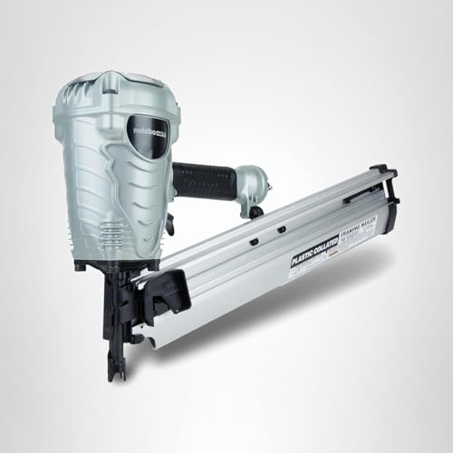 The NR90AES1 framing nailer drives plastic collated nails from 2" up to 3-1/2" in length and features Metabo HPT's next generation "industrial design." Weighing only 7. 5 lbs, this framing nailer is easy to use all day, while still providing the power similar to other bulkier and heavier framing nailers. The NR90AES1 framing nailer is great for flooring and framing, truss build-up, window build-up, sub flooring, roof decking, wall sheathing and housing construction. The redesigned head guard of the NR90AES1 framing nailer allows for a faster and easier disassembly process, saving valuable time during tool main10ance.