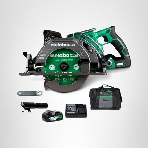 "INTRODUCING THE METABO HPT 36V MULTIVOLT 7-1/4 INCH REAR HANDLE CIRCULAR SAW — LIGHTWEIGHT POWERHOUSE FOR PROFESSIONALS This cordless rear handle circular saw is designed for those who demand power and precision in their cutting tasks. Perfect for woodworking, framing, and roofing, it offers the performance and versatility needed for a wide range of applications. With its efficient brushless motor, this saw ensures smooth and powerful cuts every time. It comes with the Metabo HPT lifetime tool body warranty for peace of mind. ENGINEERED FOR LONG-LASTING PERFORMANCE AND VERSATILITY The Metabo HPT Circular Saw delivers up to 500 2x4 cuts per charge, providing extended runtime for demanding projects. Its 53° bevel capacity with three positive stops allows for a variety of cuts, enhancing productivity and precision. The saw's lightweight design, combined with clear sight lines and easy depth adjustment, ensures faster, more accurate cuts, making it an essential tool for professionals. LIGHTWEIGHT AND USER-FRIENDLY DESIGN The circular saw's ergonomic design reduces user fatigue, while the built-in rafter hook adds convenience on the job site. The electric brake enhances safety, making it a reliable choice for any professional-grade task. COMPLETE CIRCULAR SAW KIT FOR MAXIMUM EFFICIENCY This kit includes everything you need for uninterrupted operation: (1) 36V 4.0Ah Battery, (1) Rapid Charger with USB Port, (1) 7-1/4” 24T Framing/Ripping Blade, (1) Dust Collector Set, (1) 10/13 mm Hex Wrench, and (1) Carrying Bag. CHOOSE METABO HPT FOR PROFESSIONAL-GRADE RELIABILITY Metabo HPT power tools are engineered for durability, safety, and performance. With a legacy of quality craftsmanship, Metabo HPT tools are trusted by professionals and DIY enthusiasts alike. Discover our full range of innovative tools and accessories at the Metabo HPT store."