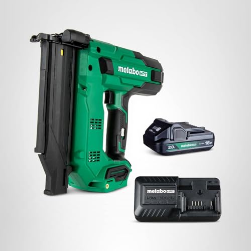 Metabo HPT Kit de clavadora Brad inalámbrica compacta multivoltaje de 18 V, clavadora calibre 18 con herramienta eléctrica, batería de iones de litio de 2,0 Ah, unidades de clavos Brad de 5/8" a 2", 700 por carga, NT1850DG