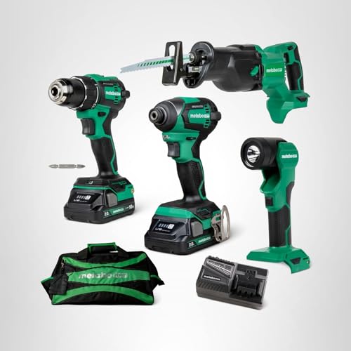 The KC18DEX4 is a versatile 4-piece 18V MultiVolt Cordless Combo Kit, designed for a wide variety of sawing, drilling, fastening, and lighting applications. This kit is an essential toolset for contractors and end-users, providing them with the necessary tools to get the job done right. The KC18DEX4 includes a 18V 1/2" Drill Driver (DS18DEX), a 18V 1/4" Compact Impact Driver (WH18DEX), a 18V Reciprocating Saw (CR18DBQ4) and a 18V 250 Lumen LED Flashlight (UB18DEQ4). These tools are accompanied by (2) 18V 2.0 Ah Lithium-ion compact batteries with charge indicators (377797M), an 18V Fast Charger (UC18YFSL), a wood cutting blade, a #2 Phillips but and carry bag for convenient storage and transportation. The KC18DEX4 18V 4-Piece Combo Kit is part of the expanding MultiVolt System of 18-Volt and 36-Volt power tools from Metabo HPT. GO lighter with 18V batteries or GO longer with the unique MultiVolt battery that works on both 18V and 36V tools to double your runtime for up to 8.0Ah of runtime per charge for more power on the GO.
