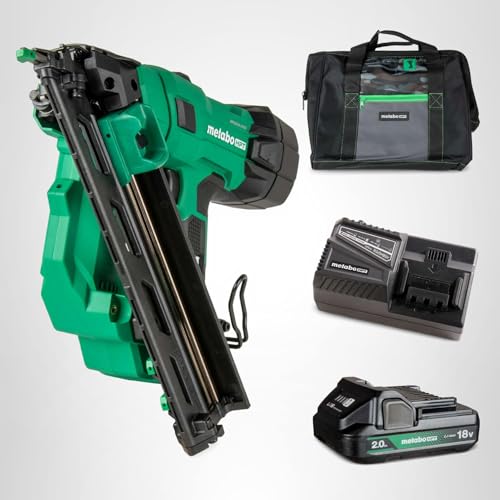 " INTRODUCING THE METABO HPT 18V MULTIVOLT™ BRUSHLESS PRO 15-GA ANGLED FINISH NAILER KIT The Metabo HPT Finish Nailer is the next generation of cordless nailers, designed for precision and power. This tool is perfect for professionals seeking efficiency and reliability in their finish work. With its advanced features and compact design, it offers the ultimate solution for all your trim and finish applications. It comes with a lifetime tool body warranty, 2-year Lithium Ion battery warranty, and 1-year charger warranty. POWERFUL, EFFICIENT, AND BUILT FOR PERFORMANCE This 18V cordless finish nailer is 13% lighter and smaller, yet more powerful than previous models. It drives 15-gauge finish nails from 1-1/4"" to 2-1/2"" with ease, delivering flush drives in hardwood and fiber cement trim. The brushless motor technology ensures longer run time and less maintenance, while the air spring drive system provides pneumatic-like performance without the need for hoses or compressors. ERGONOMIC AND VERSATILE DESIGN Weighing only 5.9 lbs without the battery, this nailer is easy to maneuver in tight spaces. The narrow tip design allows for work in tight corners. The tool-less depth adjustment and selective actuation switch enable quick changes between sequential and bump fire modes, ensuring precision and versatility for various applications. COMPLETE FINISH NAILER KIT FOR EXTENDED PERFORMANCE This kit includes everything you need for uninterrupted operation: (1) 2.0Ah Lithium Ion battery with a fuel gauge, capable of driving up to 700 nails per charge, (1) Charger, (1) Bag, and safety glasses. CHOOSE METABO HPT FOR PROFESSIONAL-GRADE RELIABILITY Metabo HPT power tools are engineered for durability, safety, and performance. With a legacy of quality craftsmanship, Metabo HPT tools are trusted by professionals and DIY enthusiasts alike. Discover our full range of innovative tools at the Metabo HPT store. "