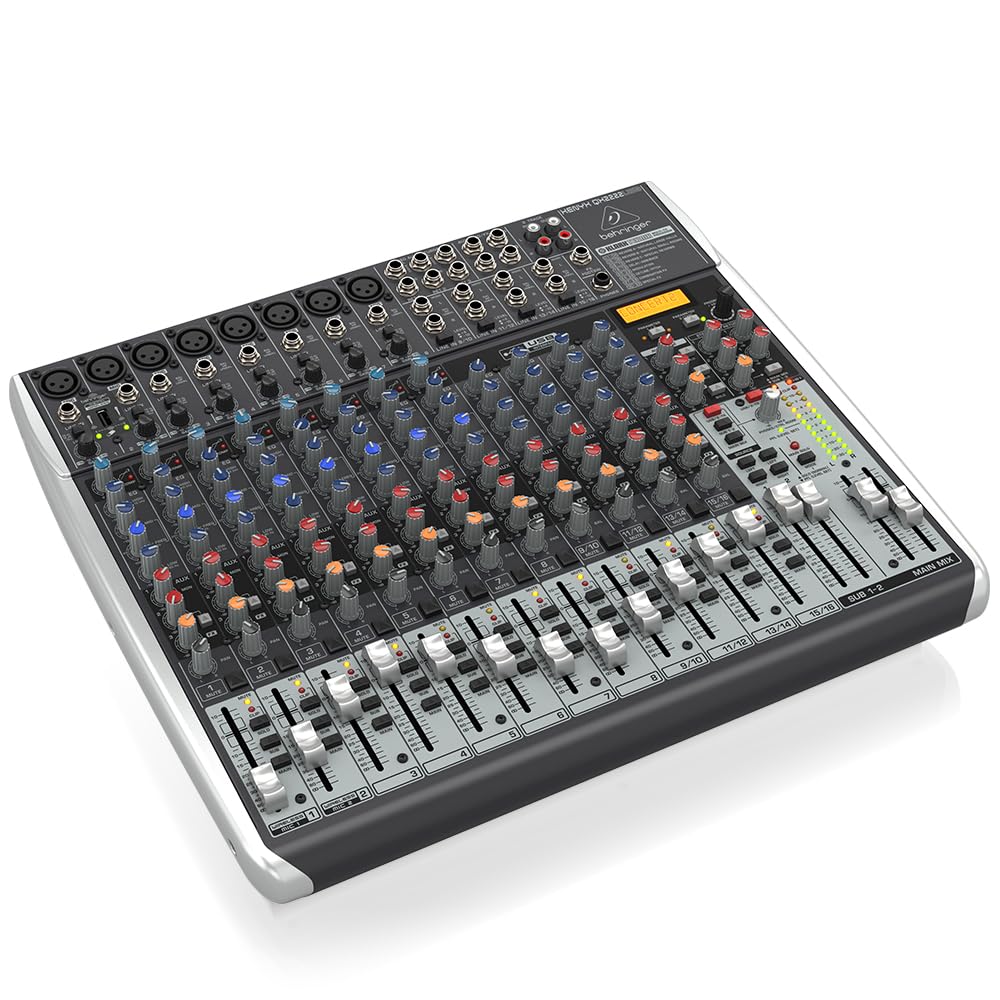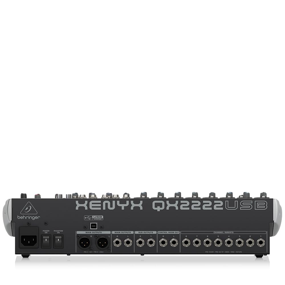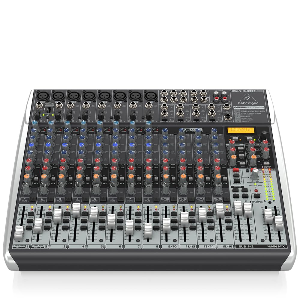 The feature-packed XENYX QX2222USB mixer allows you to effortlessly achieve premium-quality sound thanks to its 8 onboard studio- grade XENYX Mic Preamps and ultra- musical “British” channel EQs – with a semi-parametric mid band for warm and musical sound. And our easy-to-use “one-knob” compressors provide total dynamic control for the ultimate in punch and clarity, while respecting all the power and emotion you pack into every note. Add to this our KLARK TEKNIK FX processor with 32 studio-grade presets with dual addressable parameters, Tap function and storable user parameter settings – and the QX2222USB becomes an incredibly versatile mixer for your live performances.But XENYX QX2222USB isn’t just designed to ha ndle your live gigs; they also provide the state-of-the-art tools you need to make stunning, professional- quality recordings. Along with their built-in USB/audio interfaces, XENYX USB mixers come with all the recording and editing software needed to turn your computer system into a complete, high-performance home recording studio.Features: Premium ultra-low noise, high headroom mixer 8 state-of-the-art, phantom-powered XENYX Mic Preamps comparable to stand-alone boutique preamps 8 studio-grade compressors with super-easy "one-knob" functionality and control LED for professional vocal and instrumental sound Ultra-high quality KLARK TEKNIK FX processor with LCD display, dual-parameters, Tap function and storable user parameter settings "Wireless-ready" for high-quality BEHRINGER digital wireless system (not included) Built-in stereo USB/Audio Interface to connect directly to your computer. Free audio recording, editing and podcasting software plus 150 instrument/effect plug-ins downloadable at behringer.com Neo-classic "British" 3-band EQs with semi-parametric mid band for warm and musical sound Channel inserts on each mono channel for flexible connection of outboard equipment 3 aux sends per channel: 1 pre fader for monitoring, 1 pre/post fader switchable for monitoring/FX applications, 1 post fader (for internal FX or as external send) Clip LEDs, mute, main mix and subgroup routing switches, solo and PFL functions on all channels 2 subgroups with separate outputs for added routing flexibility; 3 multi-functional stereo aux returns with flexible routing Balanced main mix outputs with ¼" jack and gold-plated XLR connectors, separate control room, headphones and stereo rec outputs Control room/phones outputs with multi-input source matrix; rec inputs assignable to main mix or control room/phones outputs Long-wearing 60-mm logarithmic-taper faders and sealed rotary controls "Planet Earth" switching power supply for maximum flexibility (100 - 240 V~), noise-free audio, superior transient response plus low power consumption for energy saving High-quality components and exceptionally rugged construction ensure long life Conceived and designed by BEHRINGER Germany