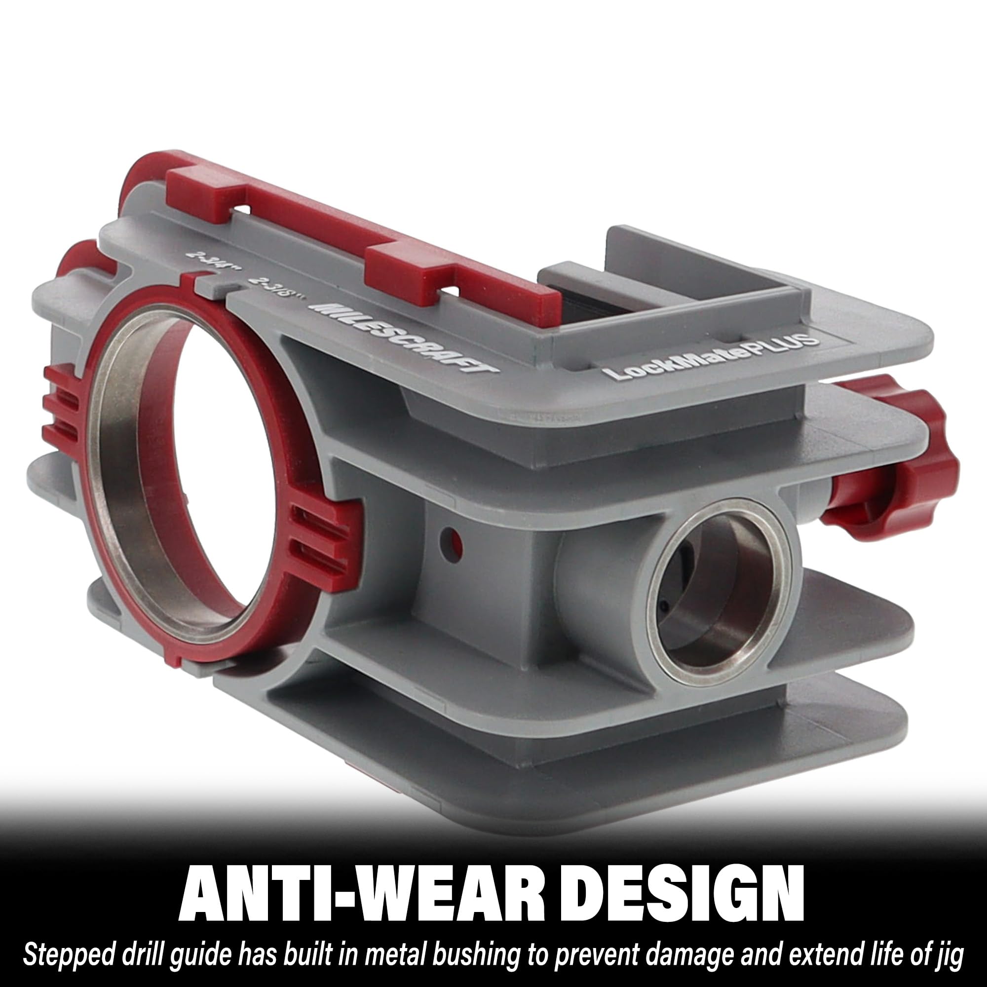 Maximize the speed and ease of door lock and knob installation projects with the LockMatePLUS™, by Milescraft. Perfect for large jobs where time is money, the self-clamping design sets up in seconds without the need for screws or hardware. The non-marring clamp has a wide rubber surface that sets up or removes instantly, prevents slipping and protects doors. To mount the the LockmatePLUS™ simply place on door at desired location and twist the clamp. No mounting screws or hardware are required! High quality, Cobalt Alloy, Bi-metal hole saws make quick work when drilling any interior or exterior door. The bits are designed for use with any door material: wood, composite, hollow core, or metal doors. Long-lasting drill guides have a unique built-in metal bushing. The large guide’s stepped profile also helps prevent damage and extend the life of the jig. Drill from one side until the pilot tip exits the door, then continue drilling from the other side to prevent tear out. Switch to the 1” hole saw to cross bore the perfect hole for latches. Attach the spacer plate for doors measuring 1-3/8”, or remove the plate for doors with 1-3/4” thickness.The jig also adjusts to 2-3/8” and 2-3/4” backsets. Most handles and locks are adjustable to either setting. Make sure to measure other hardware in the home to assure uniformity. The LockMatePLUS™ also includes a dead bolt locator attachment. Before removing the Jig, insert the locator and mark the center for perfectly spaced knobs and locks.