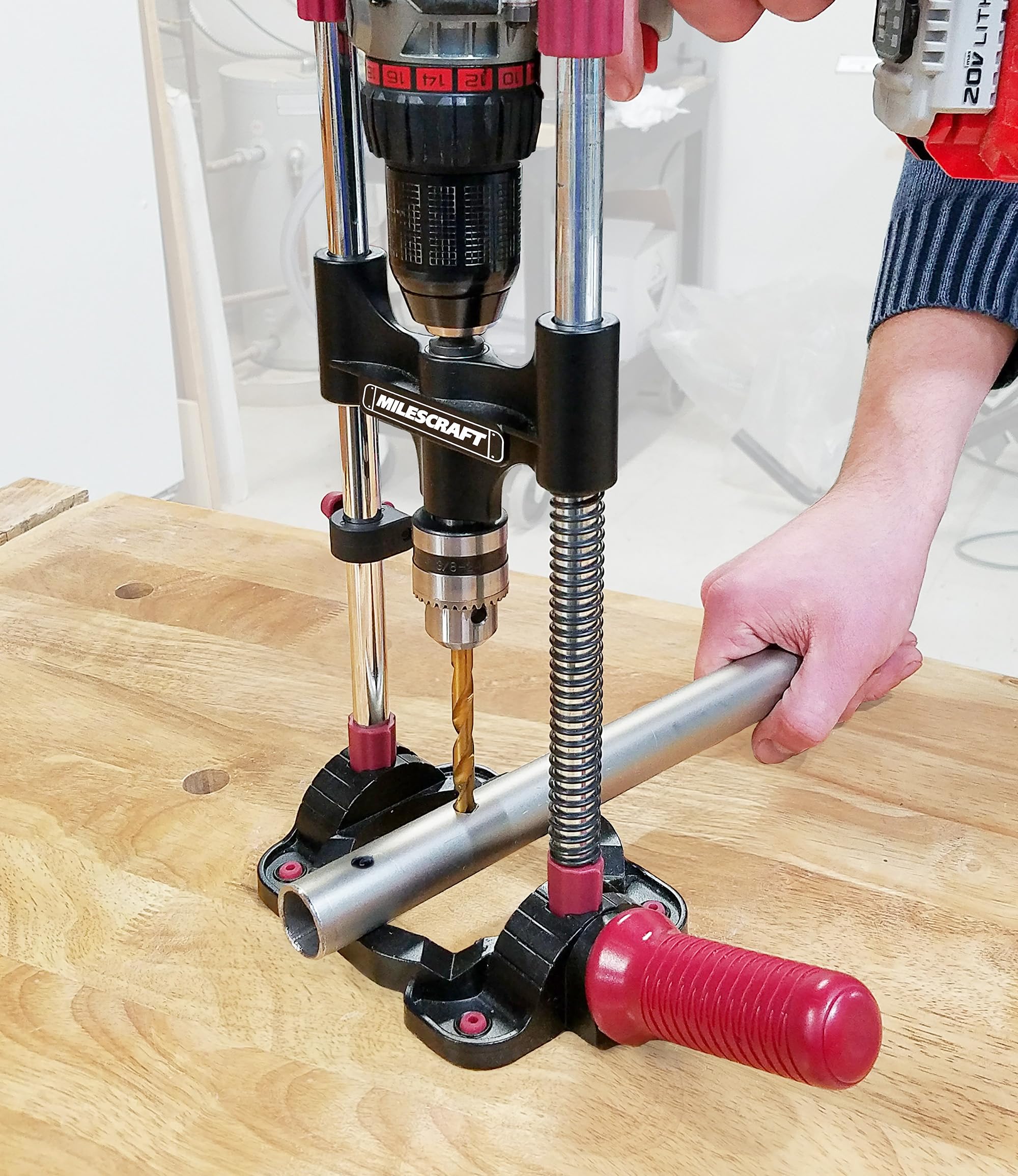 You can’t take a drill press with you everywhere you go, but you can take a Milescraft® DrillMate™. This portable drill guide makes it quick and easy to drill precise holes at multiple angles. The DrillMate™ saves time and eliminates frustration when drilling multiple holes in all types and shapes of stock.