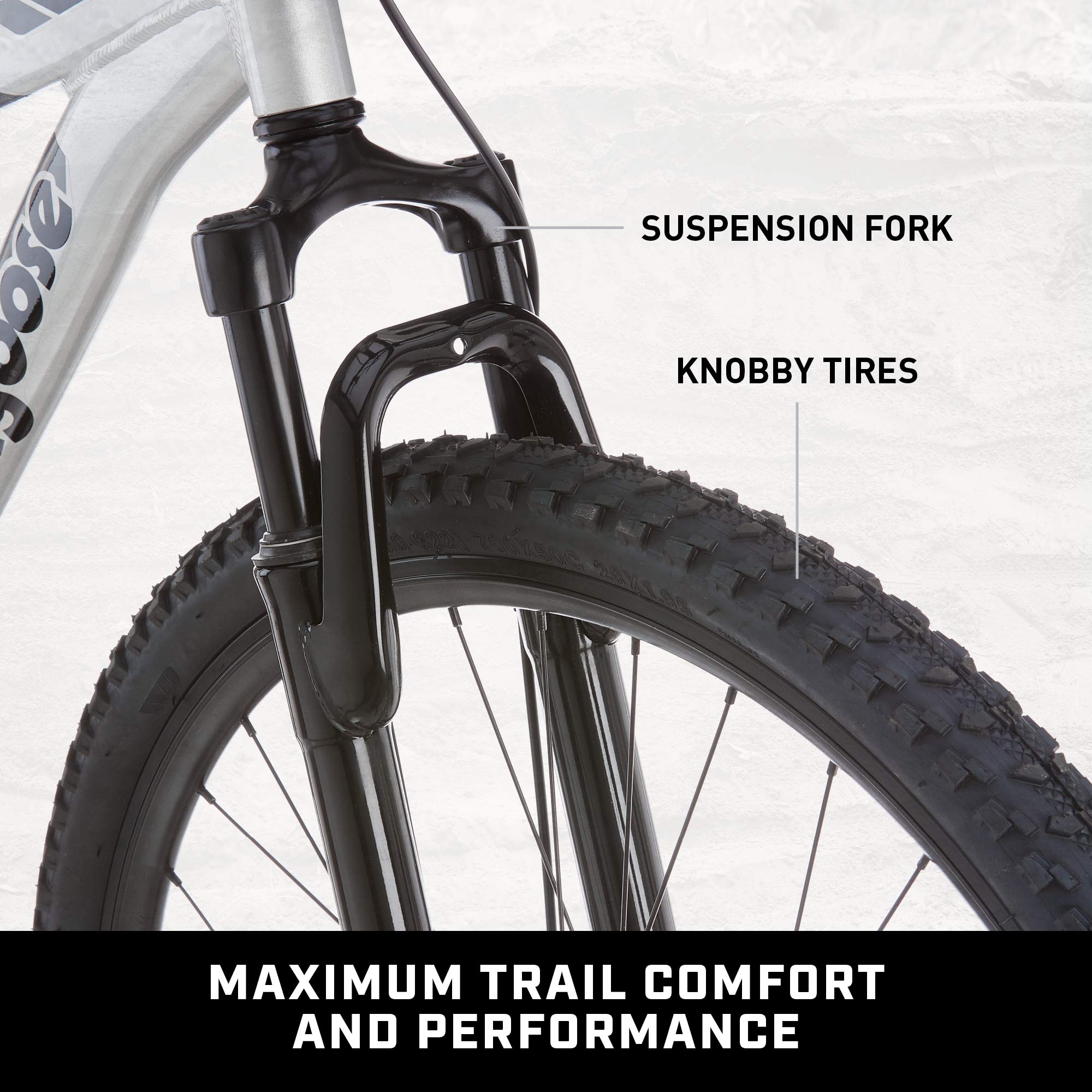 Take on rough terrain with the Impasse by Mongoose. The Impasse features a lightweight aluminum hardtail frame with front suspension fork that’s ready for the trail. The 21-speed Sram twist shifters with rear derailleur let you adapt to your terrain with ease, while the front and rear disc brakes provide crisp stopping power every time. Plus, the 29-inch knobby tires give you all the traction you need to conquer rugged trail conditions. There’s nothing you can’t do on a Mongoose.