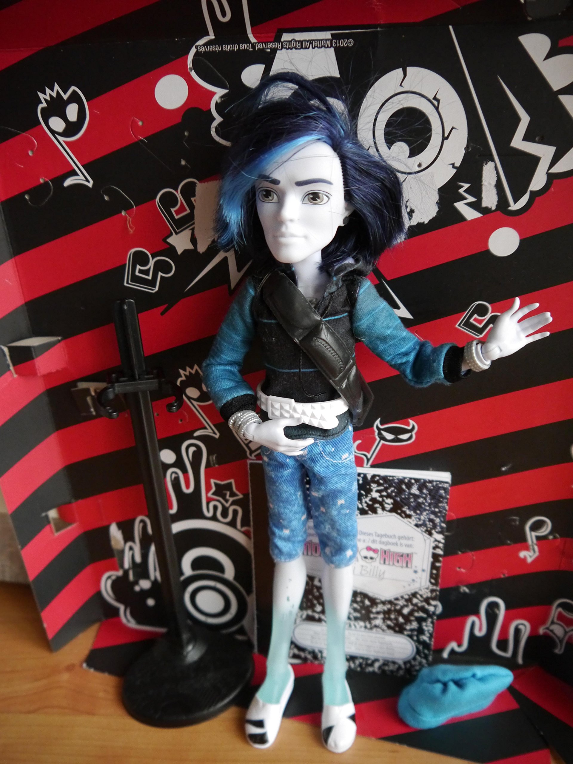 A new Scare Mester is starting at Monster High and that means new lessons to learn, new looks to die or undie for and new beast friends haunting the halls! Invisi Billy, son of the Invisible Man, is outfitted in his fashionably fierce core school outfit. With an iconic look in shades of blue and black, he’s ready to show himself in a striped hoodie and long shorts with a monsterrific print. A white belt and white and black shoes are easy to see. Killer accessories include a messenger bag for school, to-die-for silvery jewelry and a blue beanie. With his signature streaked hair, he looks scary cool for the first day of school! Invisi Billy doll also comes with a matching folder, signature-style brush, doll stand and character-specific diary. Collect the rest of the Monster High student body (each sold separately) for a full monster roster! Doll cannot stand alone. Ages 6 and older. Features: • Invisi Billy, son of the Invisible Man, is wearing a new to-die-for look for the new Scare Mester at Monster High! • He looks fashionably fierce in a striped hoodie and long shorts with a monsterrific print. • A white belt and white and black shoes are easy to see. • Killer accessories include a messenger bag for school, to-die-for silvery jewelry and a blue beanie. • Invisi Billy doll also comes with a matching folder, signature-style brush, doll stand and character-specific diary.