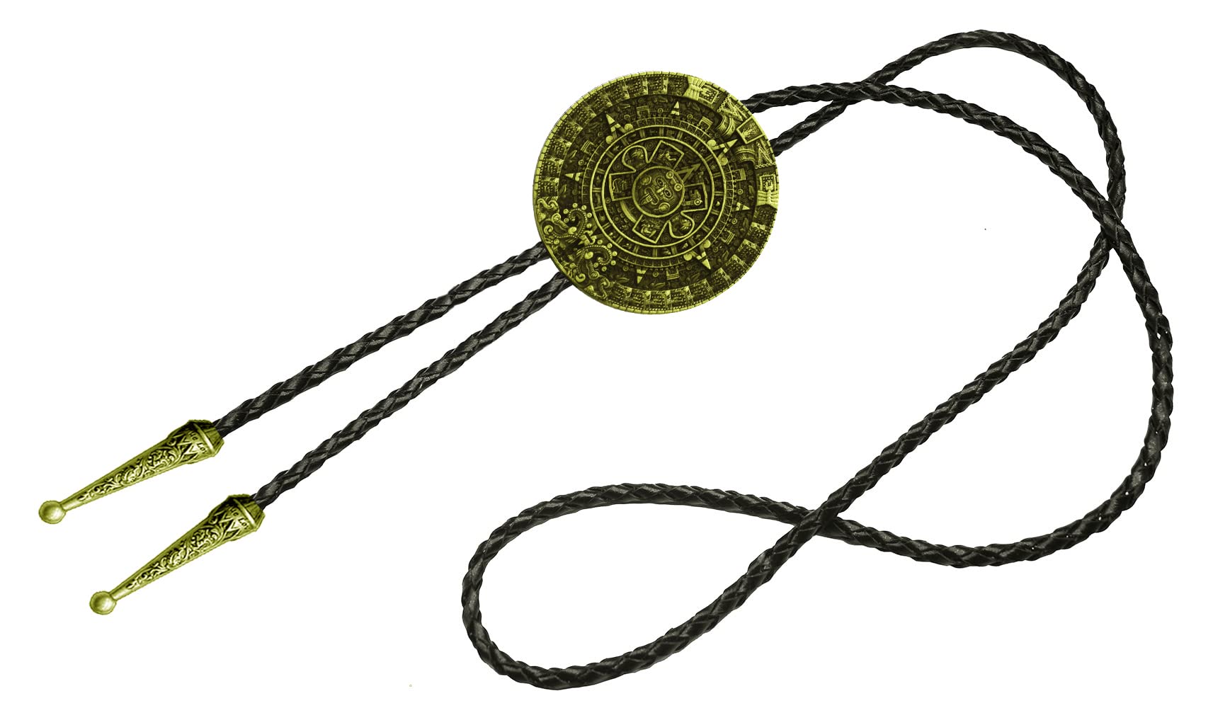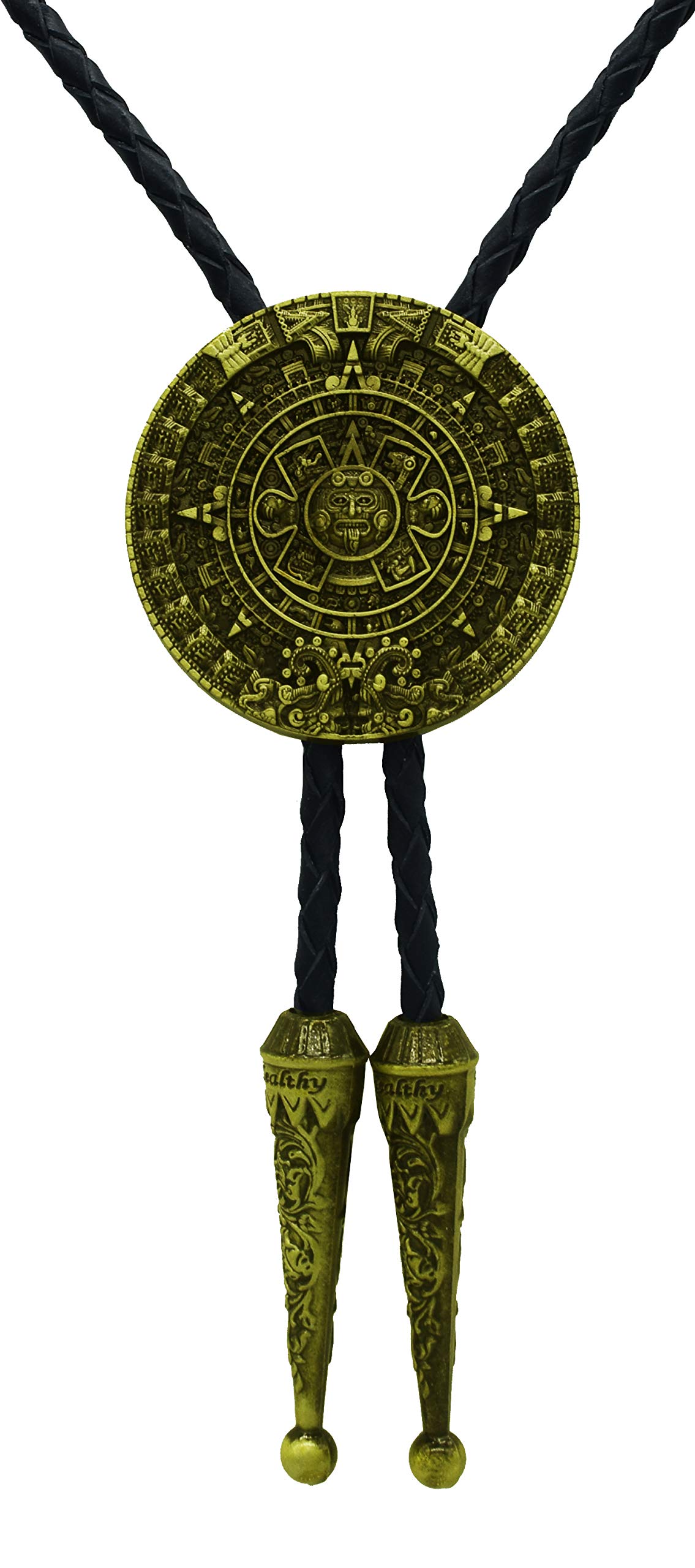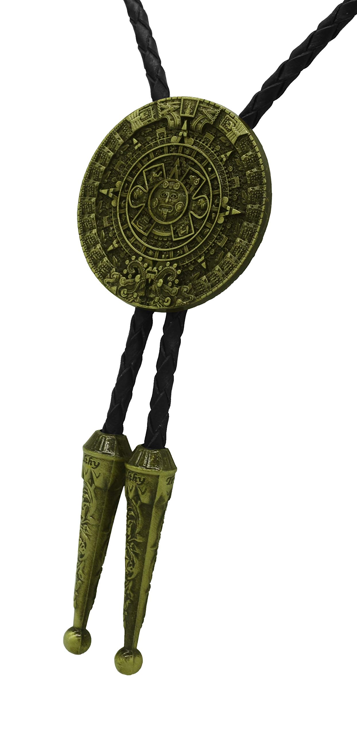 Moranse Corbata Bolo Con Calendario Azteca De Peltre Diseño De Círculo Vaquero Dos Colores (Dorado)