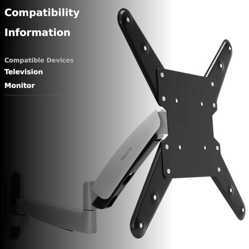 -SLEEK DESIGN - The Mount-It TV Wall Mount Bracket has built-in secondary features for an easier and more comfortable viewing experience. A six-degree range of rotation allows you to level your mount precisely. The spring arms can be tightened or loosened. A loose spring arm is easier to move if you need frequent adjustments, while a tight spring arm is stiff for a sturdy position, which is ideal for touchscreen or long-term configurations.