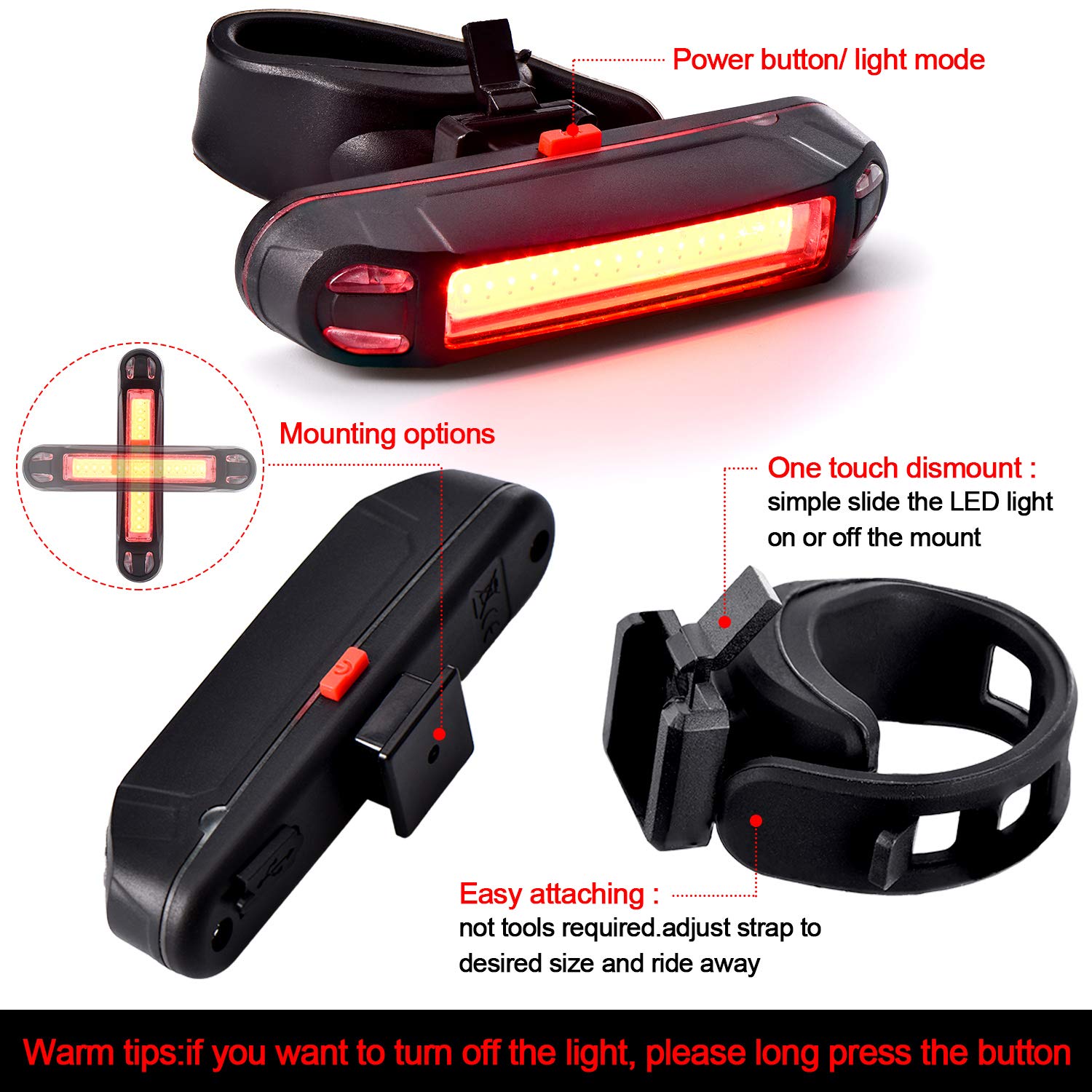-Bright light for your safety: the COB lamp beads of rechargeable bicycle taillight offer bright light to provide good visibility for cyclist in the or foggy morning, effectively remind others of your appearance to protect your safety