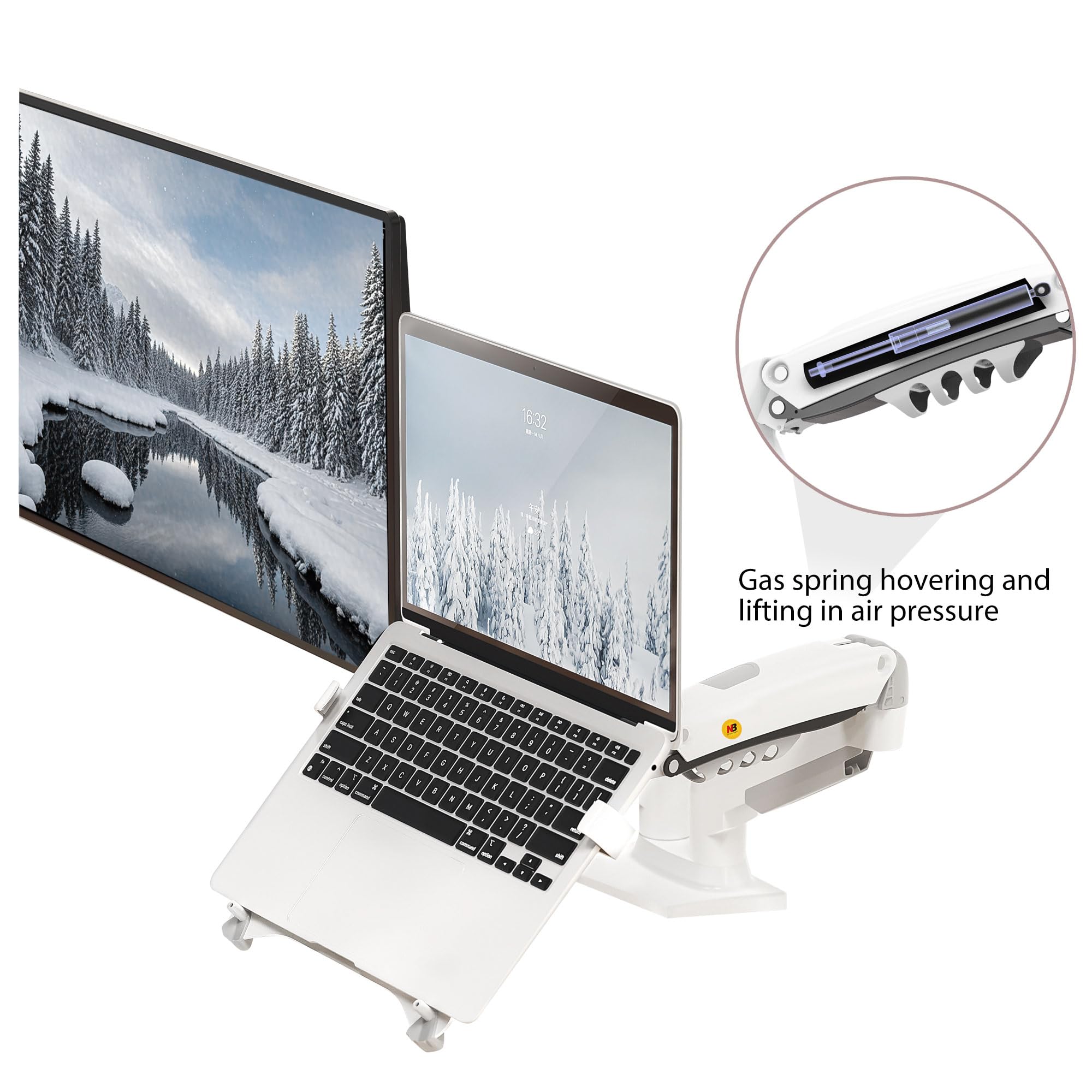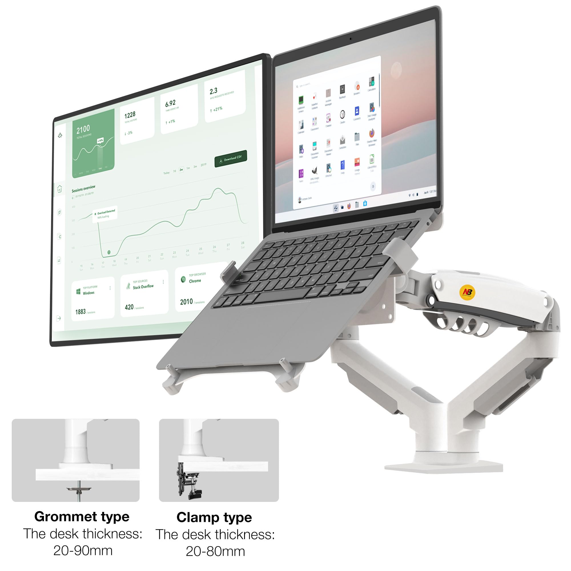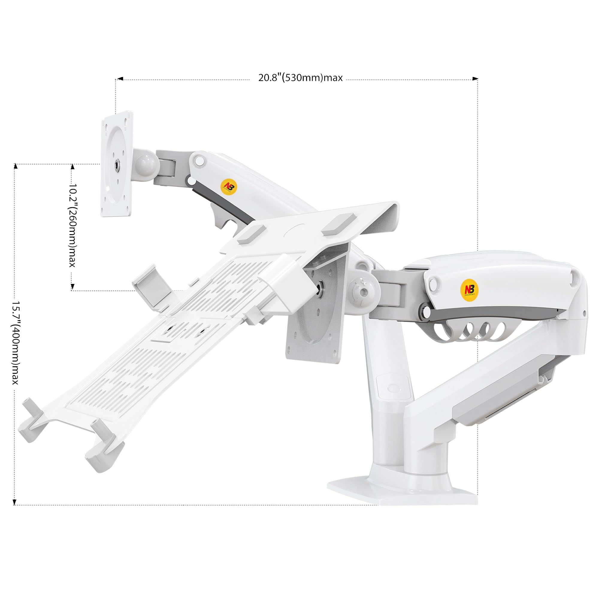 NB North Bayou Soporte para computadora portátil con bandeja ajustable para computadora portátil de 10 a 17 pulgadas, brazo de movimiento completo con placa VESA para monitor de 17 a 30 pulgadas, montaje con ojal con abrazadera F160-FP (blanco)
