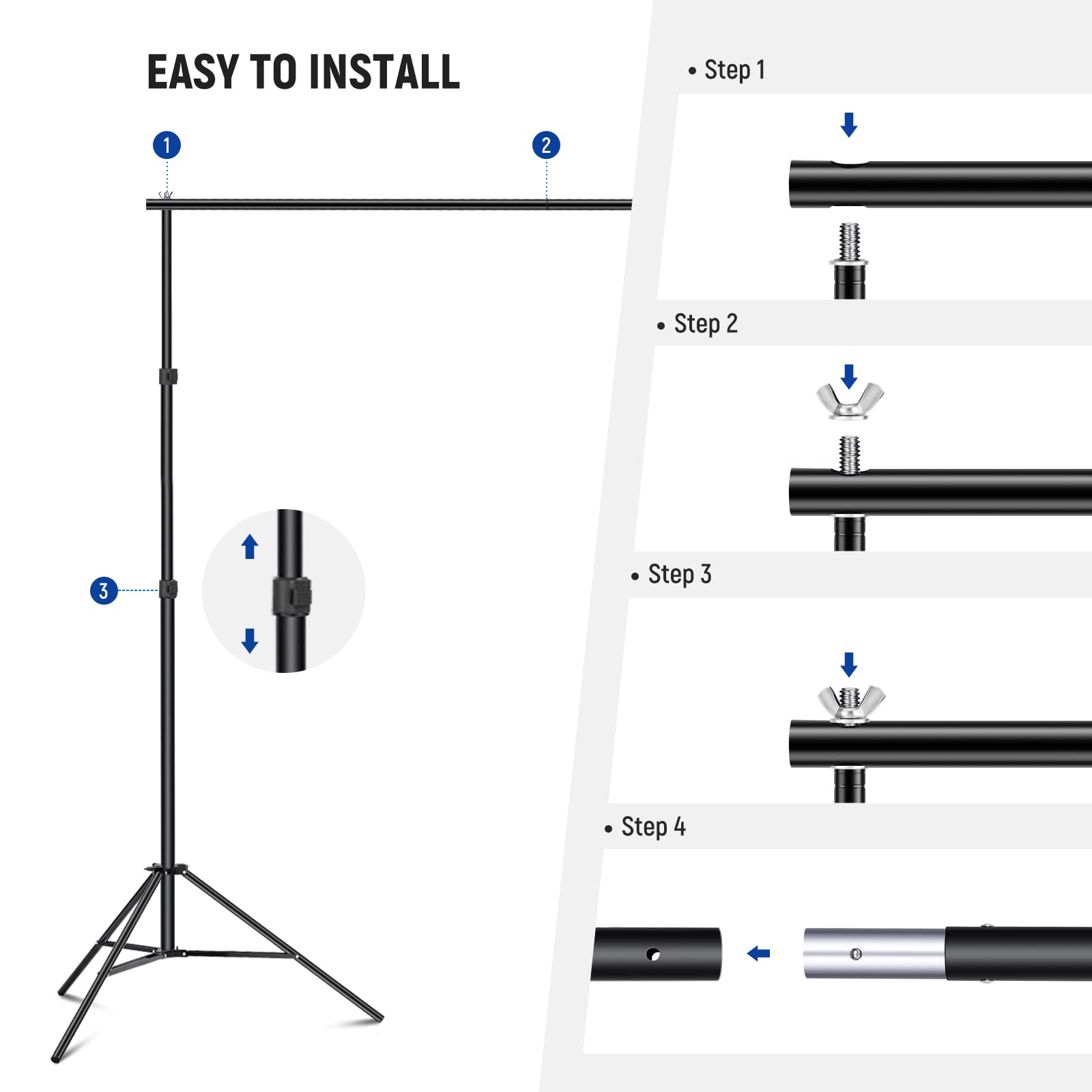 -Backdrop Support System: Comes with 2 backdrop stands, 4 crossbars, and other accessories to ensure a stable support for your backdrop. Ideal for photo studio, parties, weddings, and other events
