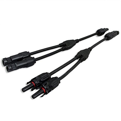 - Make sure this fitsby entering your model number. - Pair of Branch Connectors: Provides a quick and easy parallel wiring solution for solar panels - Compatible with all solar connectors and Easy to Install, Durable, Reusable. Dustproof, IP67 Waterproof - It is Y type parallel when connecting solar panels with type connectors (1 M 2 F - It has excellent aging resistance, UV endurance, hermetic sealing and dustproof design, it can be used in harsh environments. - Eligible plastic material has marvelous performances of high low temperature, fireproof ,anti-Ultraviolet rays and applied to the long-time operation outside. Pair of Branch Connectors: Provides a quick and easy parallel wiring solution for solar panels Compatible with all solar connectors and Easy to Install, Durable, Reusable. Dustproof, IP67 Waterproof It is Y type parallel when connecting solar panels with type connectors (1 M 2 F