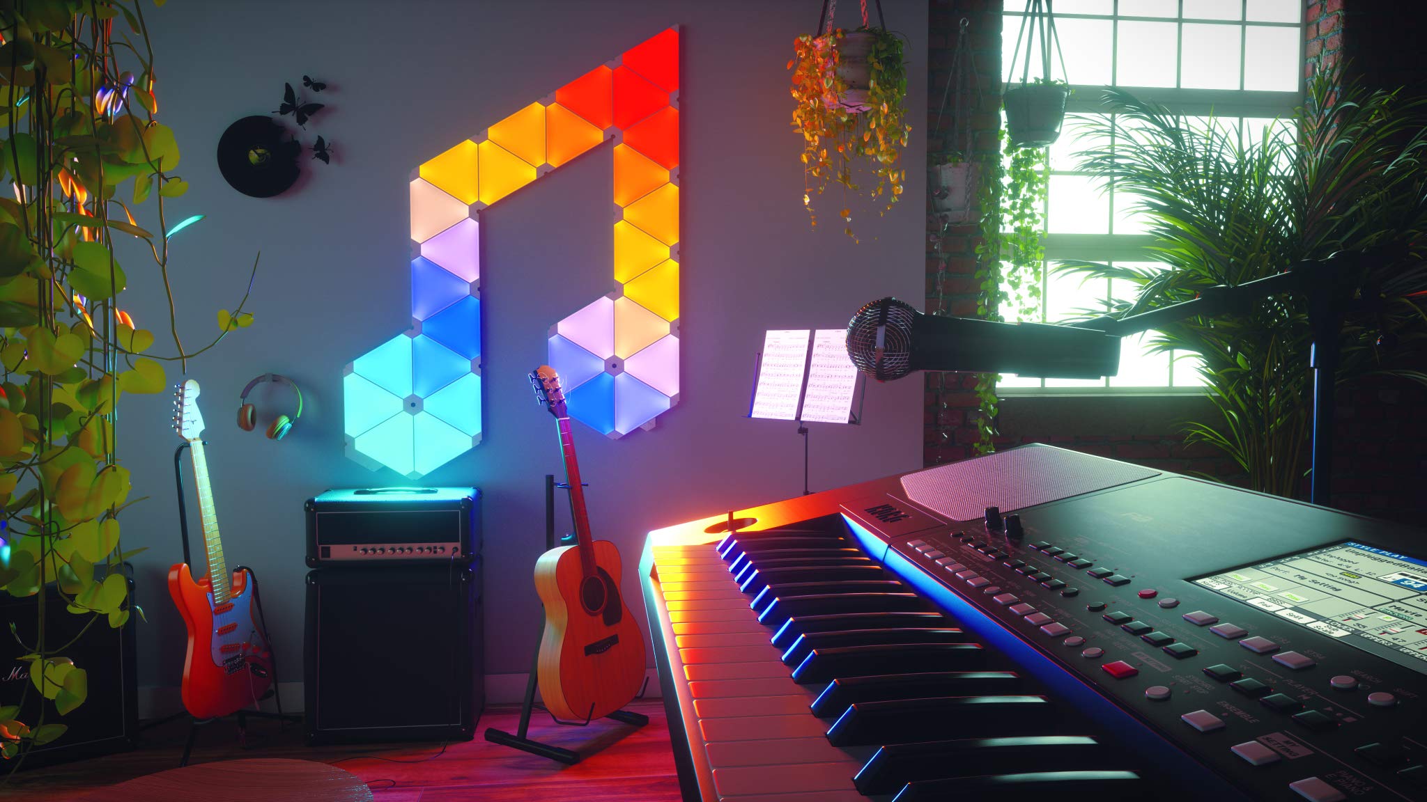 -The Rhythm module recognizes music so the panels change colour in time with the rhythm, and you can also use the app or voice control to make your own shows.