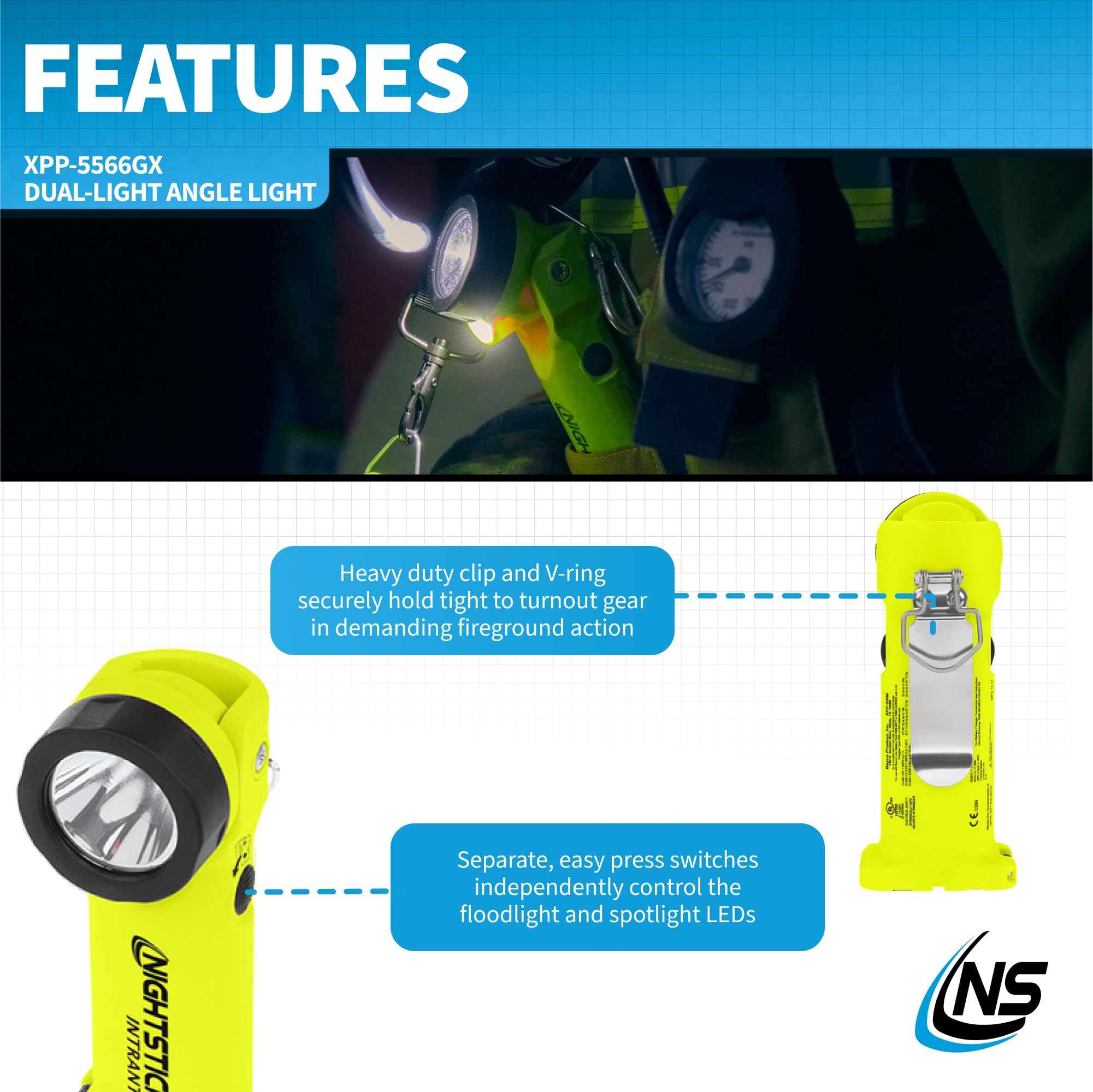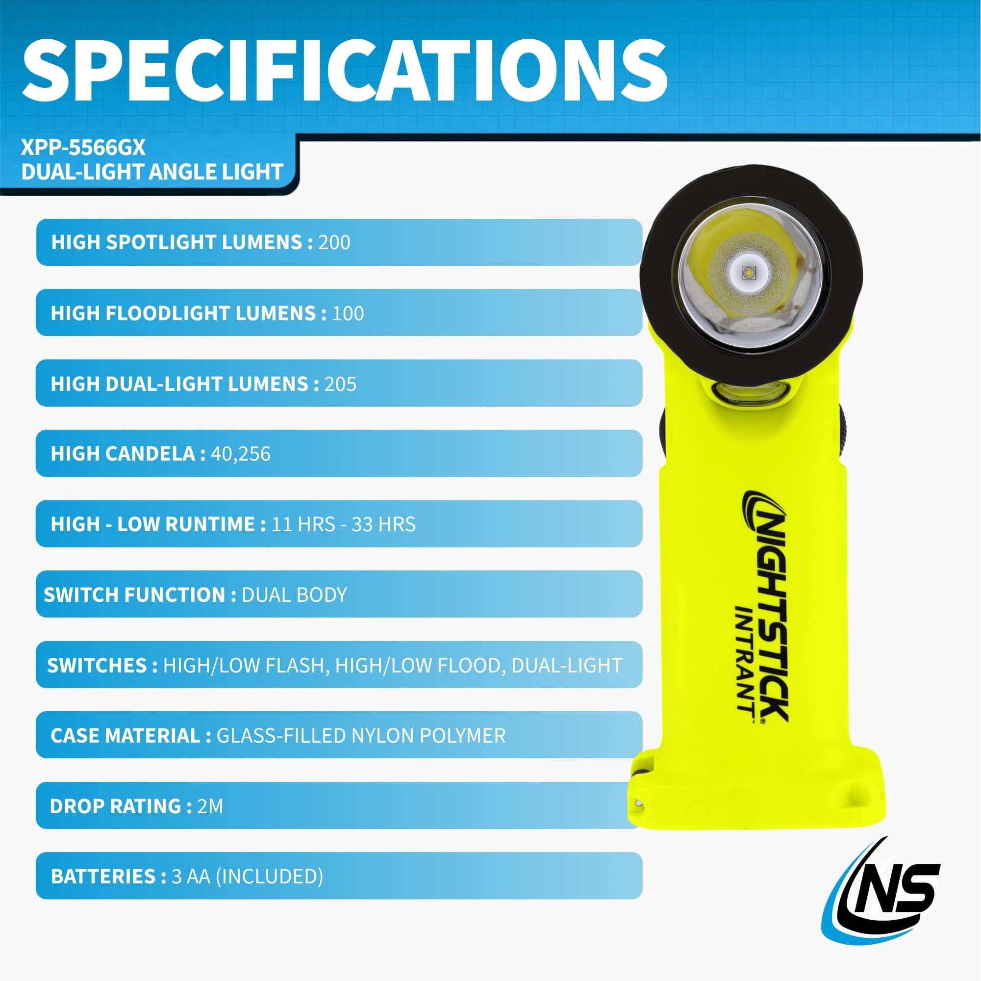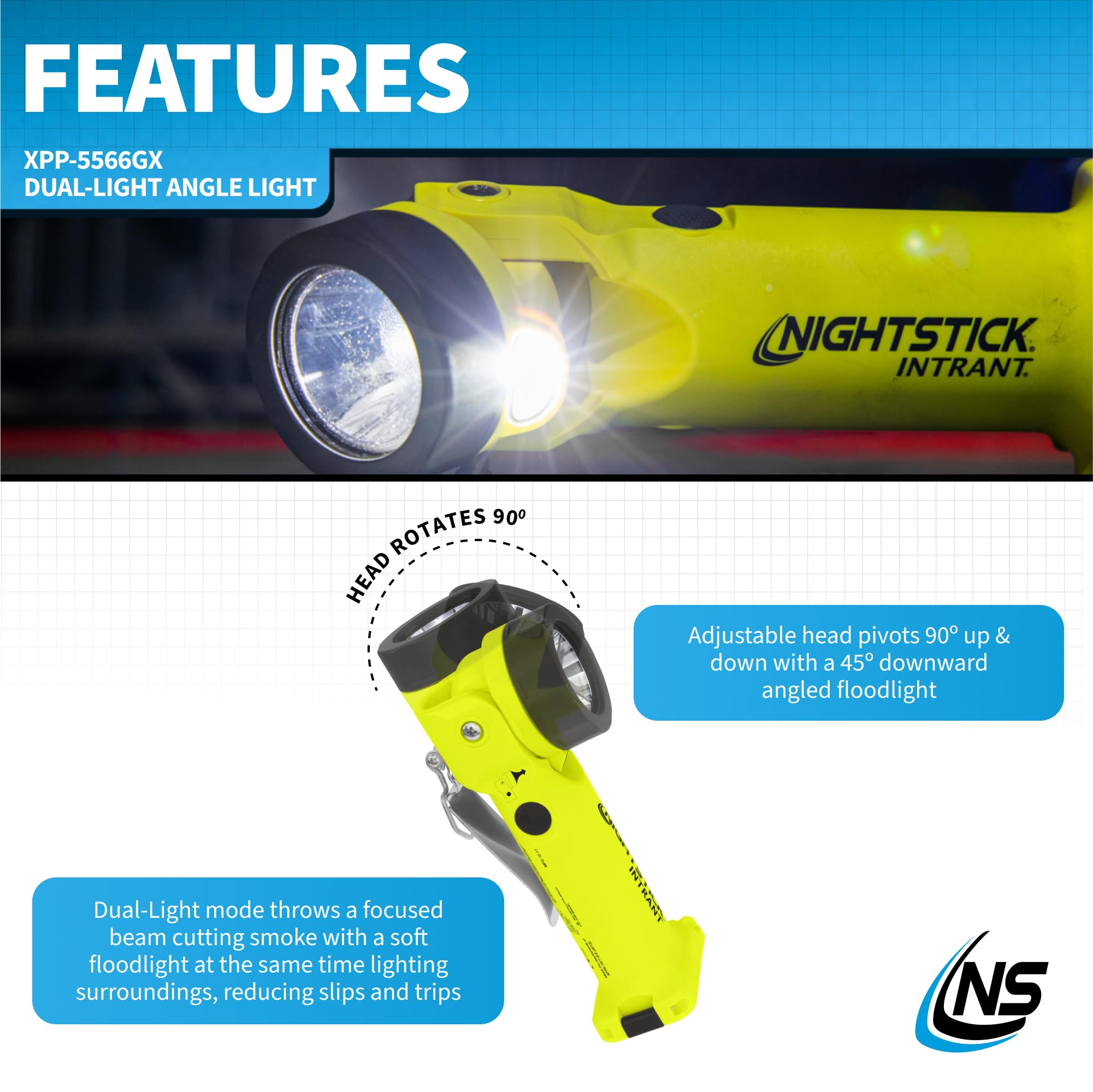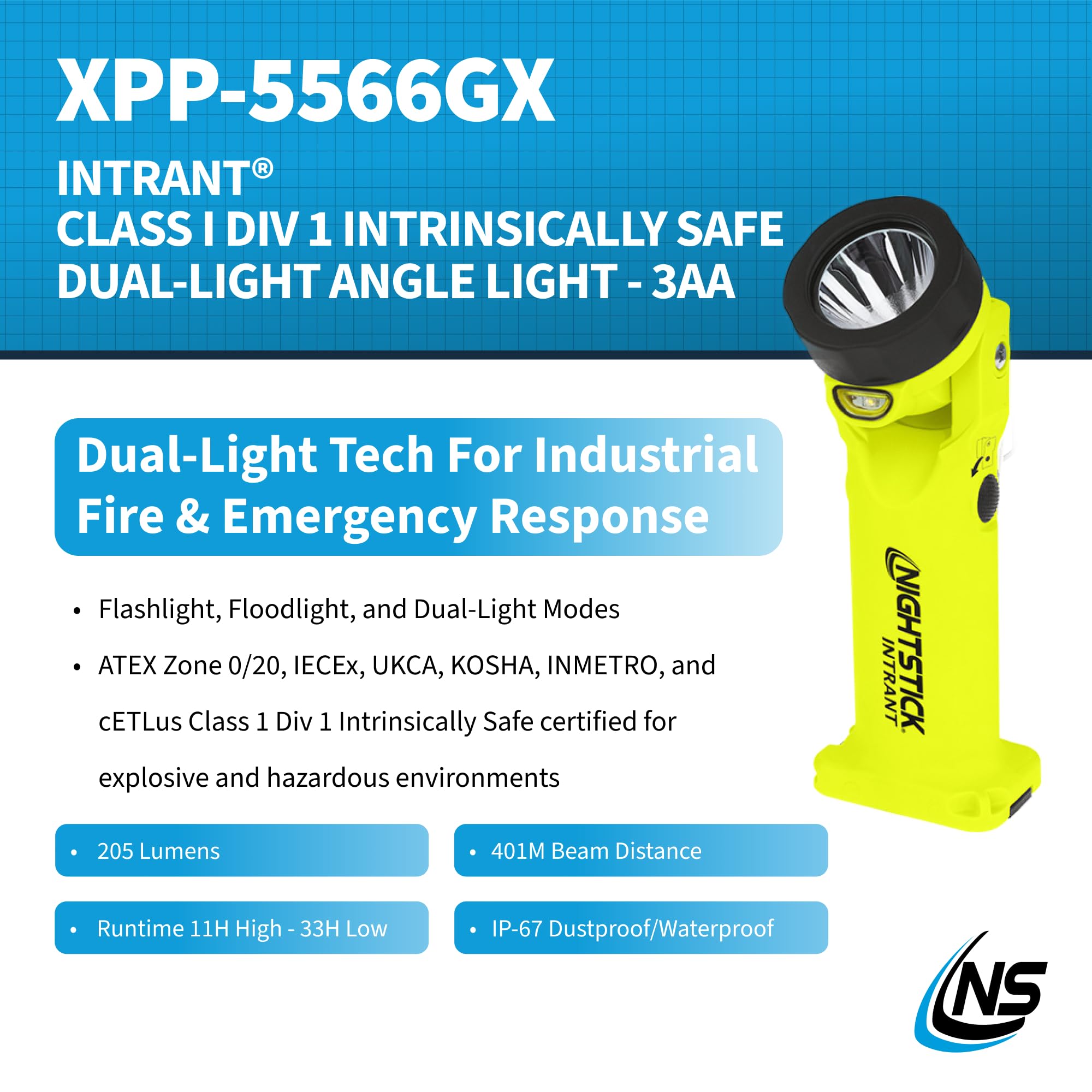 Nightstick XPP-5566GX Intrant Luz de doble ángulo intrínsecamente segura - Linterna 3 en 1, reflec