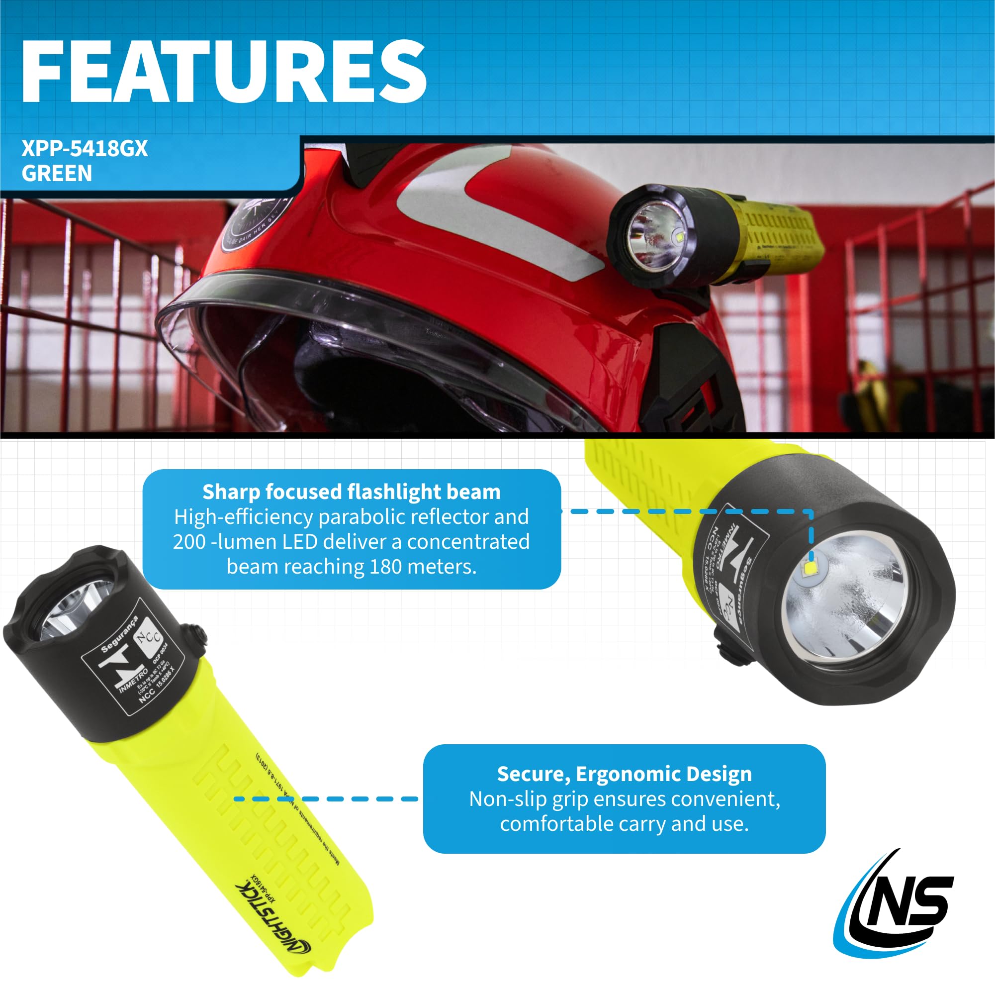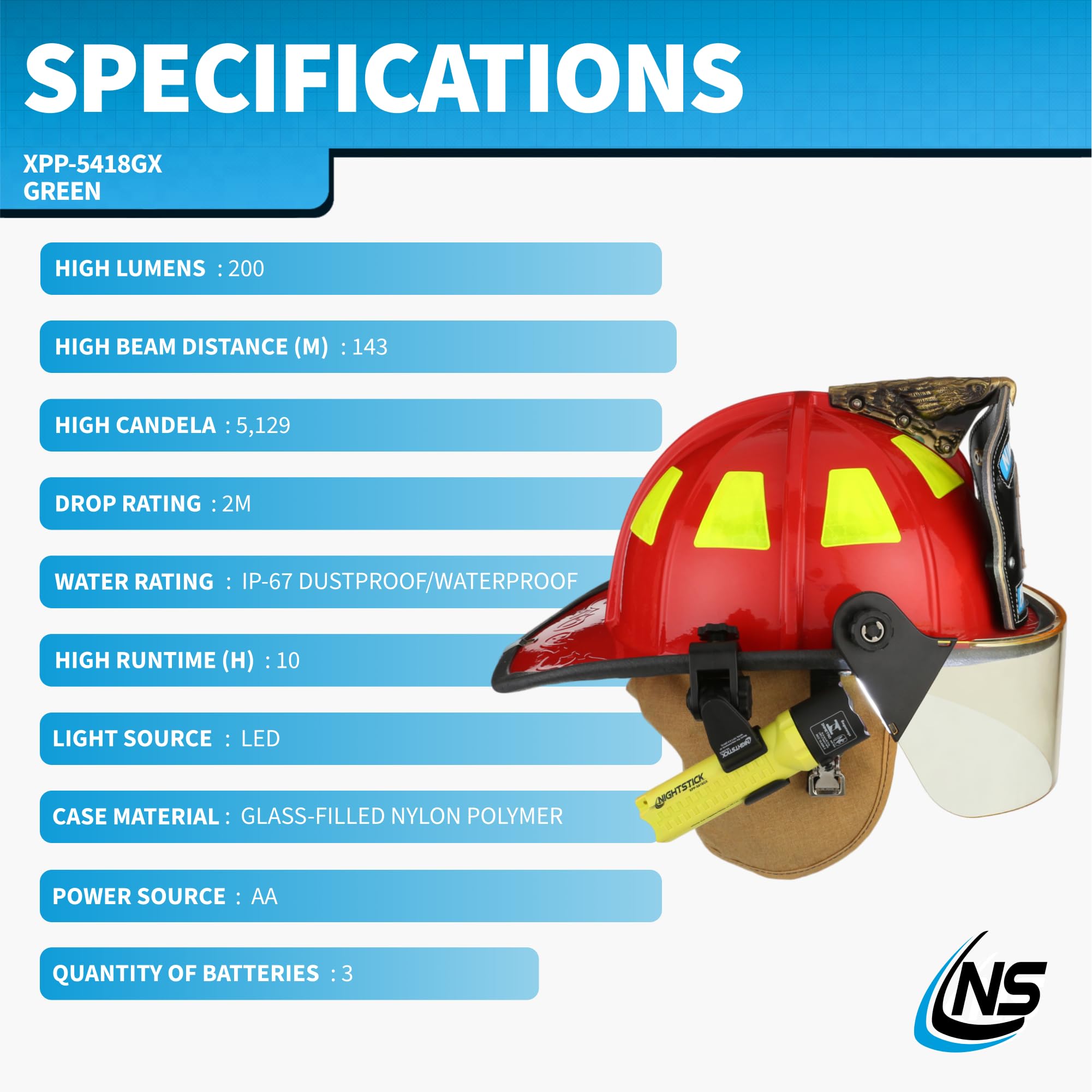 -Can be mounted to virtually all Fire Helmets and Hard Hats