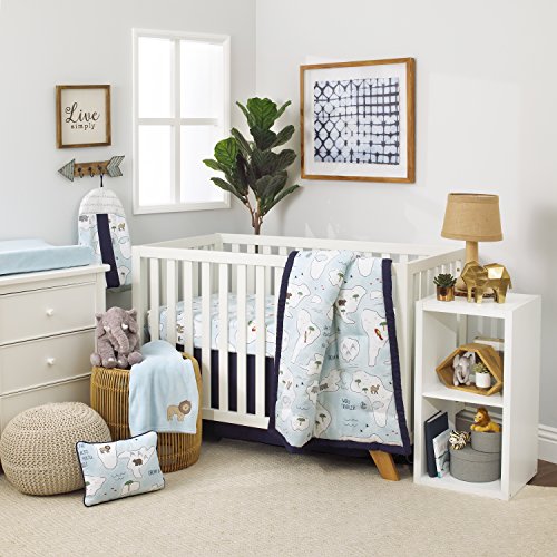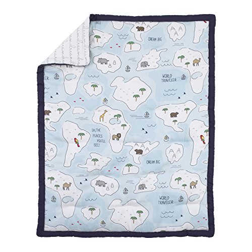 NoJo Dreamer Little Explorer World Map Juego de cama para cuna de 8 piezas, azul marino / azul claro / blanco