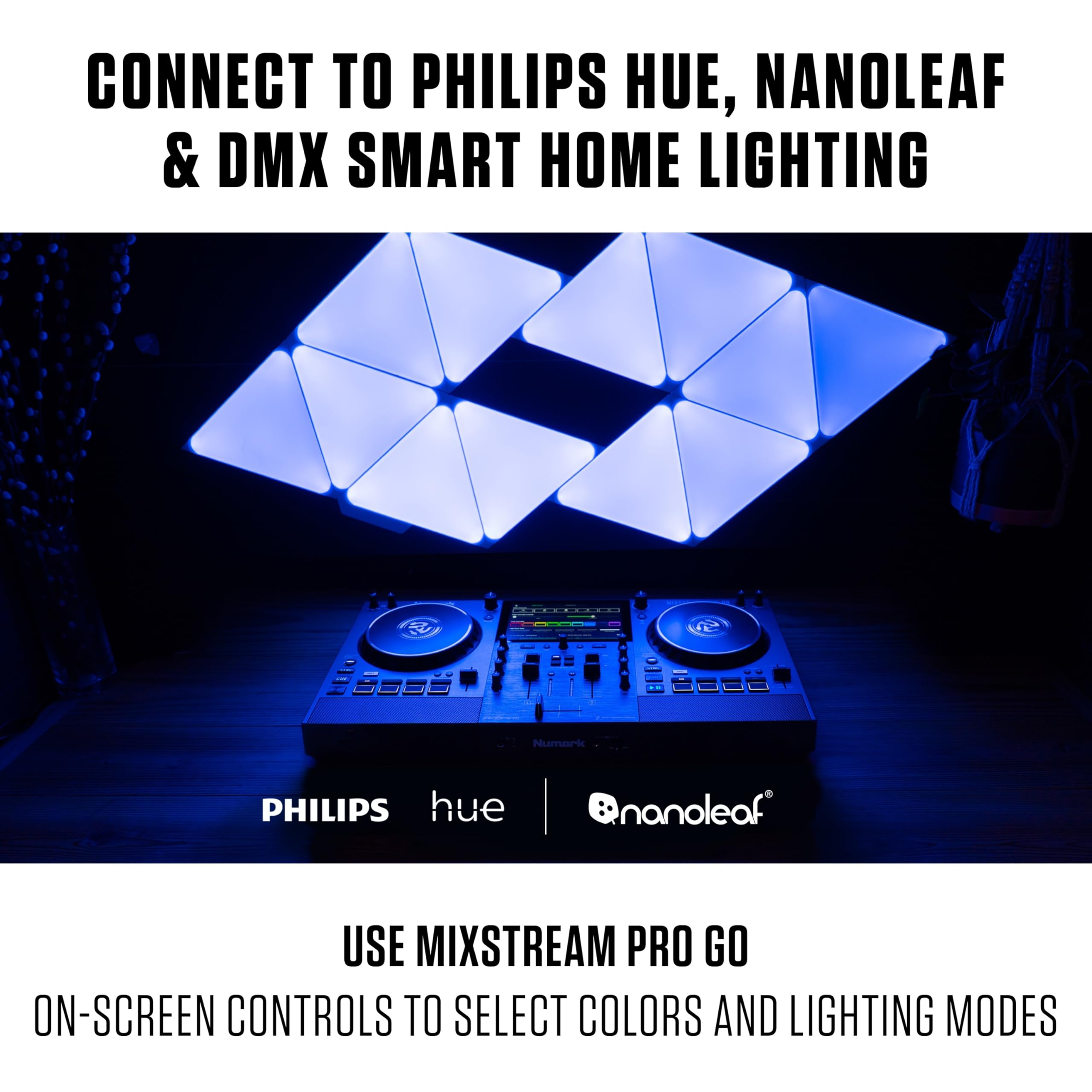 -Control your DJ Lights wirelessly from Mixstream Pro Go (Philips Hue, Nanoleaf & DMX lights) and play via the onboard speakers with dedicated volume control; No need for DJ Headphones and other DJ Equipment