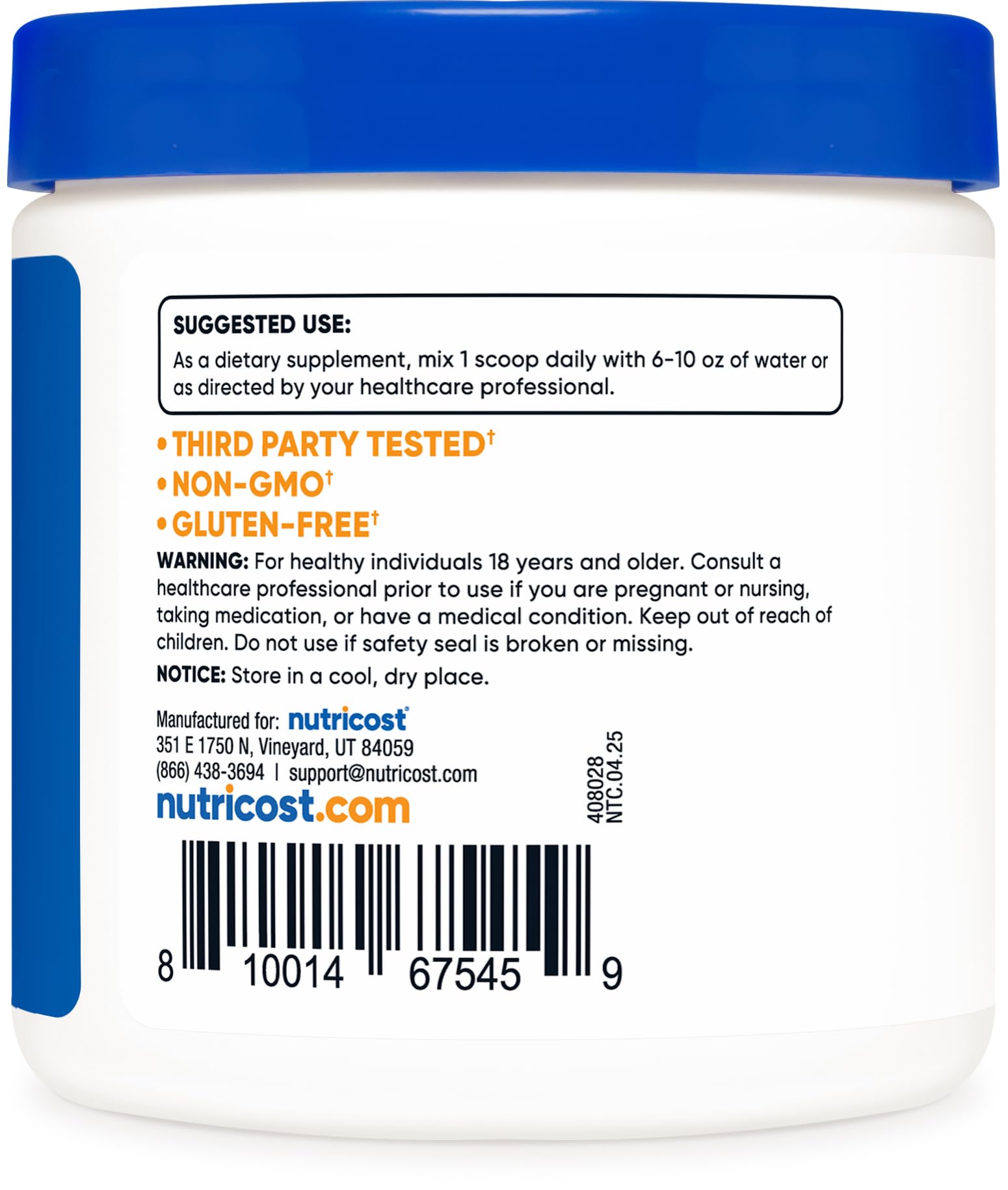 -Non-GMO, Gluten Free, 3rd Party Tested