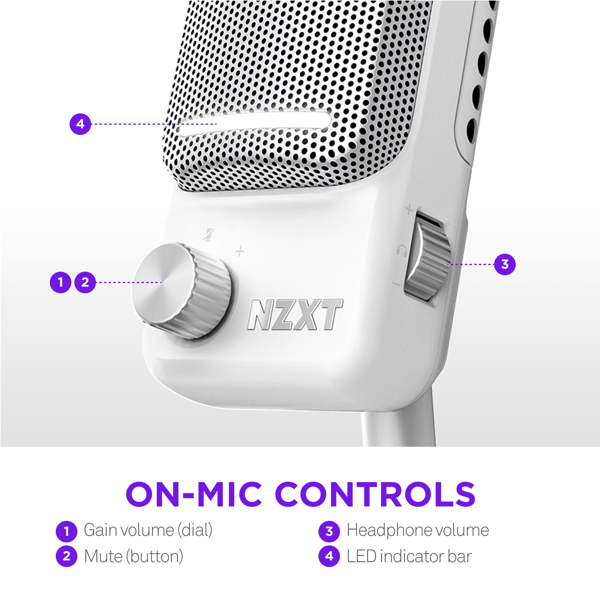 -NZXT Capsule Elite Wired USB Microphone - White