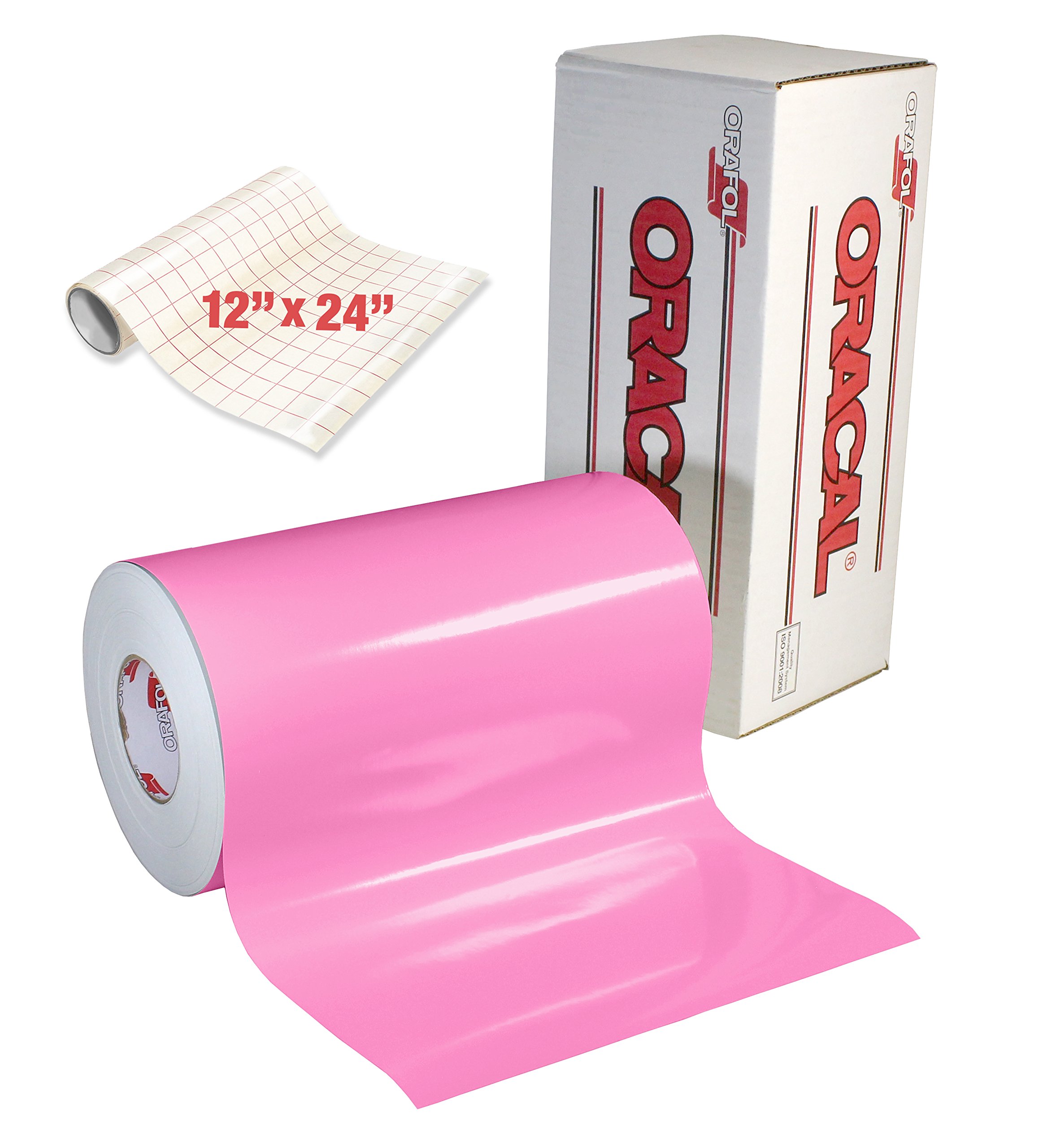 ORACAL 651 Vinilo adhesivo artesanal brillante de color rosa suave para Cameo, Cricut y Silhouette, incluido un rollo gratuito de papel de transferencia transparente (50 pies x 12 pulgadas)