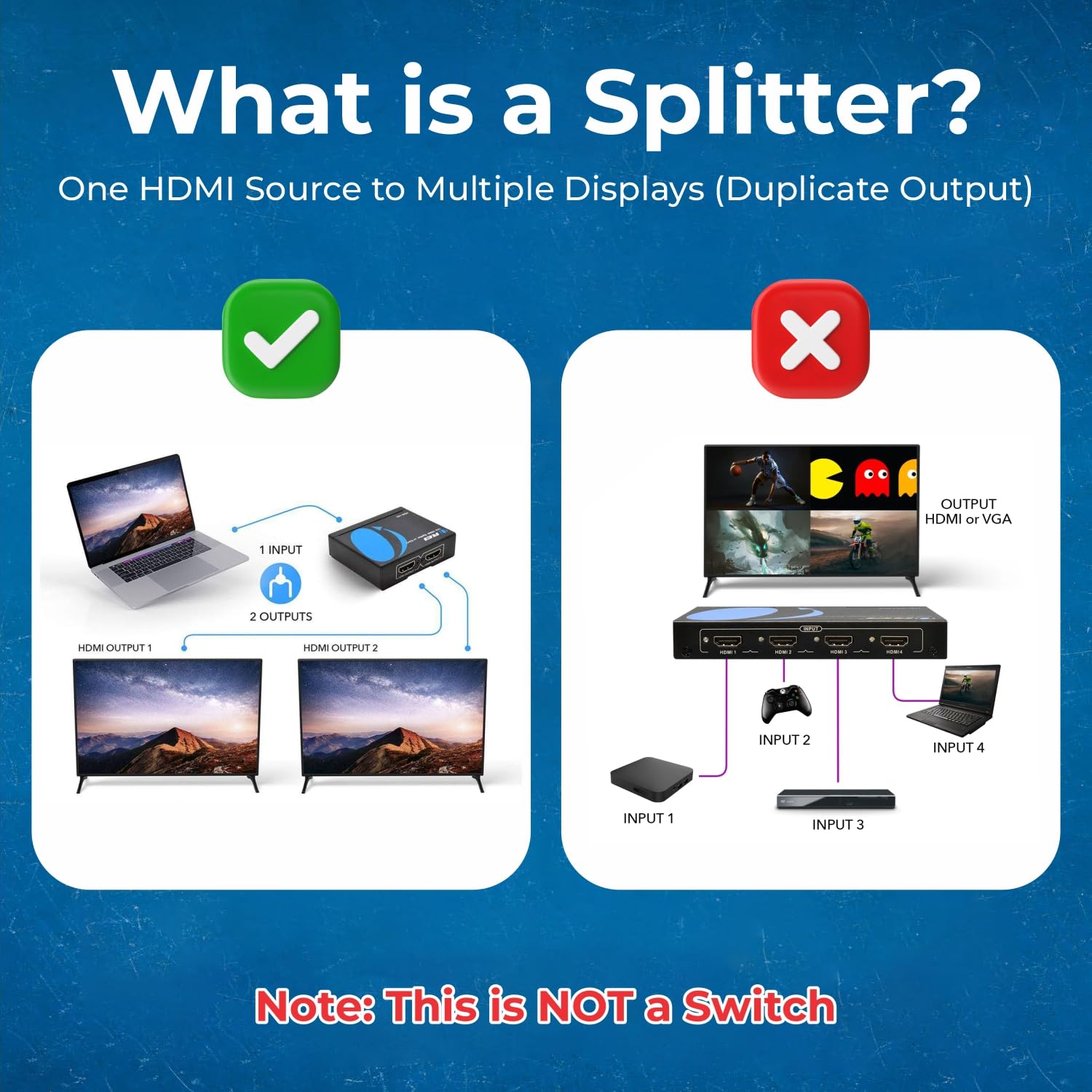 -This OREI HDMI splitter will NOT Extend Monitors to create dual screen mode; HDMI cables longer than 30 feet would not work.