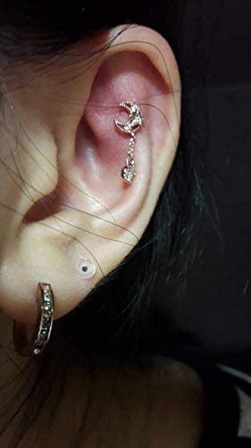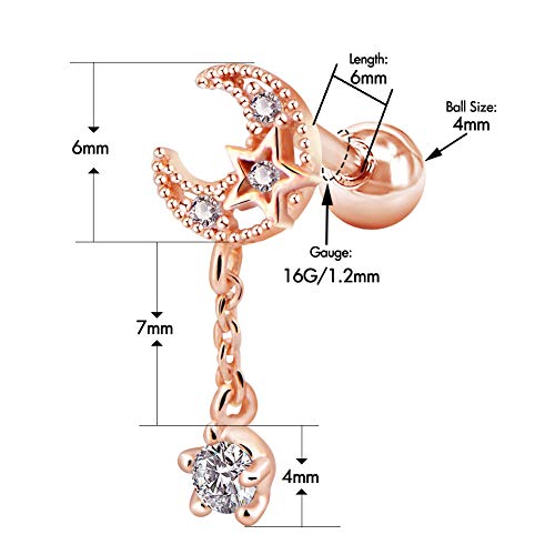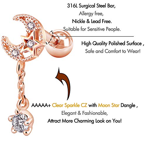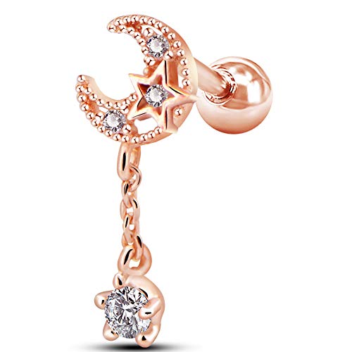 - Style:16G Stainless Steel Cartilage Earring Moon with CZ Dangle Tragus Earrings Cartilage Earring Stud