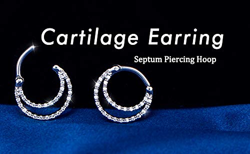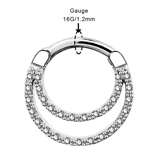 OUFER 16G Daith Septum Anillos Diseño único Clear CZ Pavimentado 316L Acero inoxidable Daith Helix Pendientes Septum Piercing Joyería