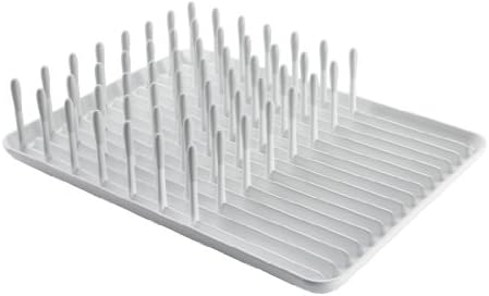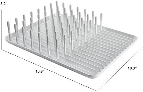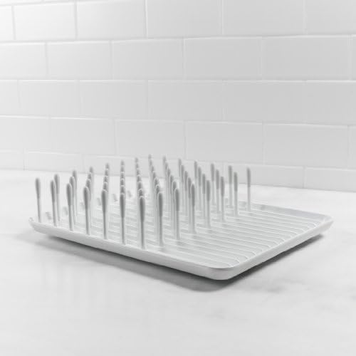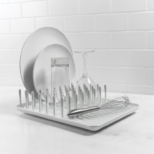 Item Package Quantity:1 | Size:A Keep your dishes secure and upright with the OXO Drying Rack. The Drying Rack accommodates plates, glasses, mugs and more. Raised ribs on the bottom of the tray ensure items dont sit in a pool of water, keeping them clean, sanitary and dry. Additional space at the front of the Rack is useful for small parts. The corners of the tray are optimally shaped to easily pour out excess water, and elevated non-skid feet at the bottom of the tray make it easy to lift.