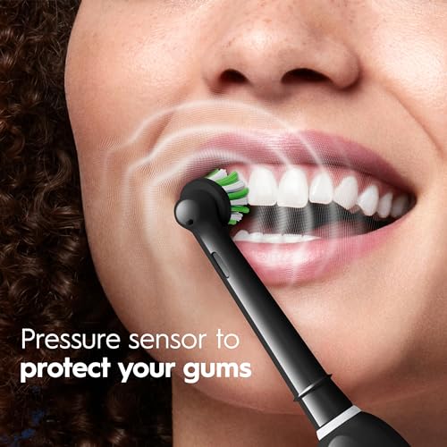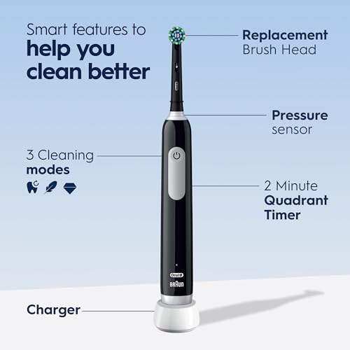 Oral-B Pro 1000 Cepillo de dientes eléctrico recargable, negro con sensor de presión, 3 modos