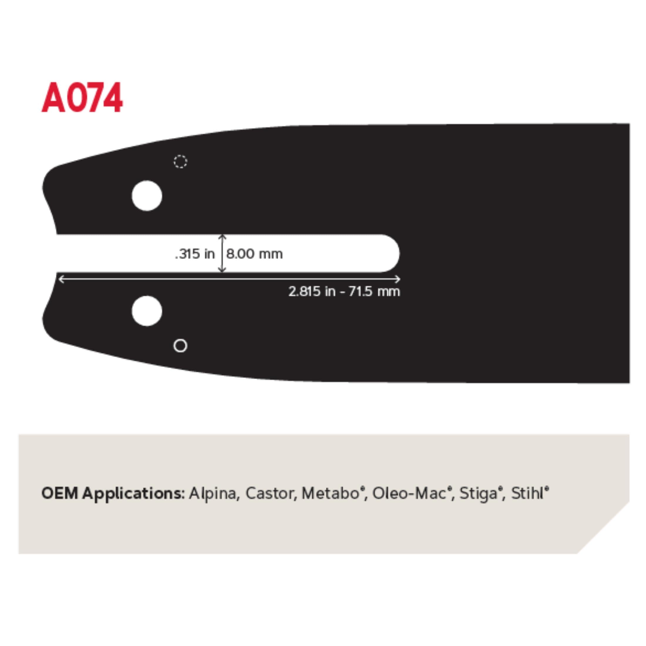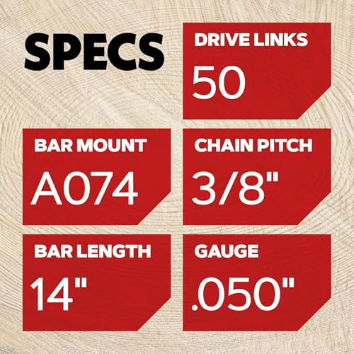 -Upgrade your chainsaw with Oregon's premium bar & chain combo. For saws with a 14" bar, 50 drive links, 3/8" pitch and .050" gauge chain, and A074 motor mount