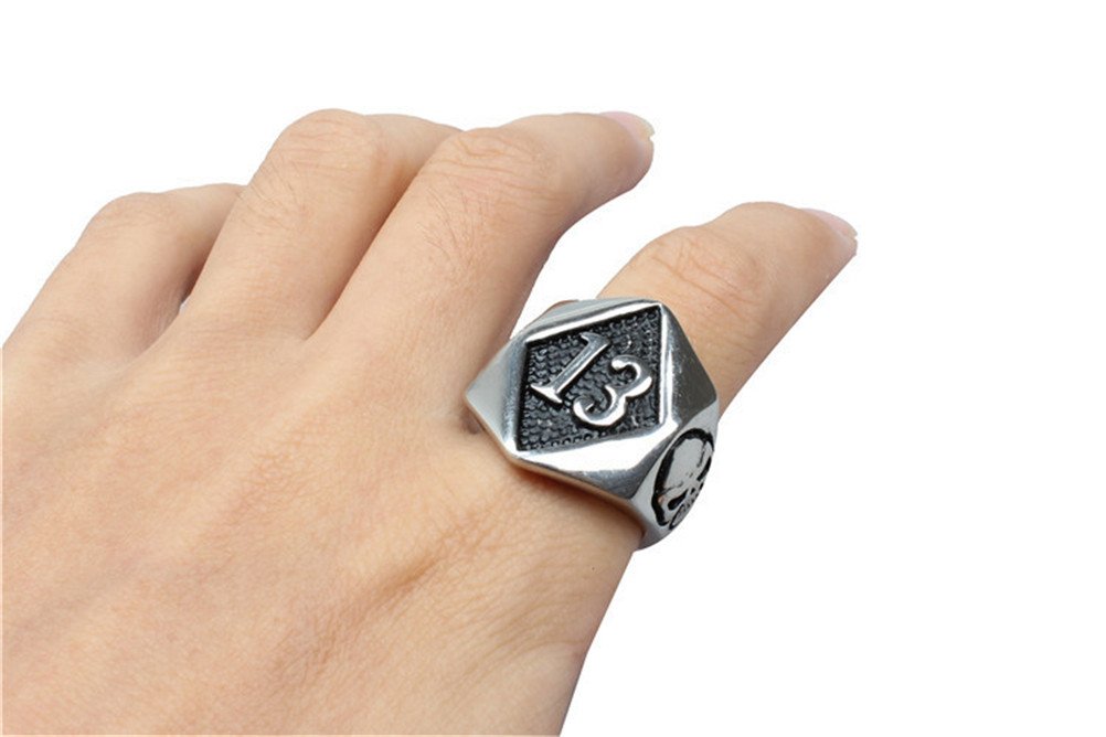 PAURO Anillo de motociclista de motocicleta con calavera malvada de acero inoxidable para hombre, talla 14, color plateado