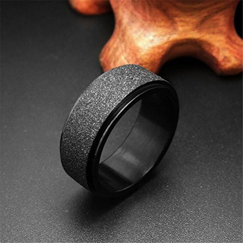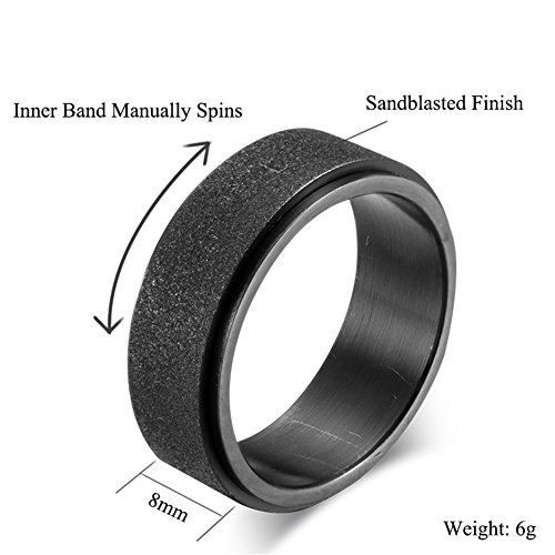- EASY TO SPIN- Matte black sandblast spinning ring for boys, men. The center ring can be spun manually, smoothly. - TOP MATERIAL- 316l Stainless Steel Built; Feature: anti-allergic / never fade / no rust, scratch resistant. - GREAT WORKMANSHIP- Well polished inner surface, comfortable to wear. Width: 8mm(0.31 inches) - OCCASIONS- It is a perfect spinner ring for ADHD/anxiety. Simple fashion design suits for daily wear. - 3 MONTHS WARRANTY and PACKAGE- Promise 90-day Products Exchange or Money Back Guarantee. Come with a PAURO black velvet pouch.