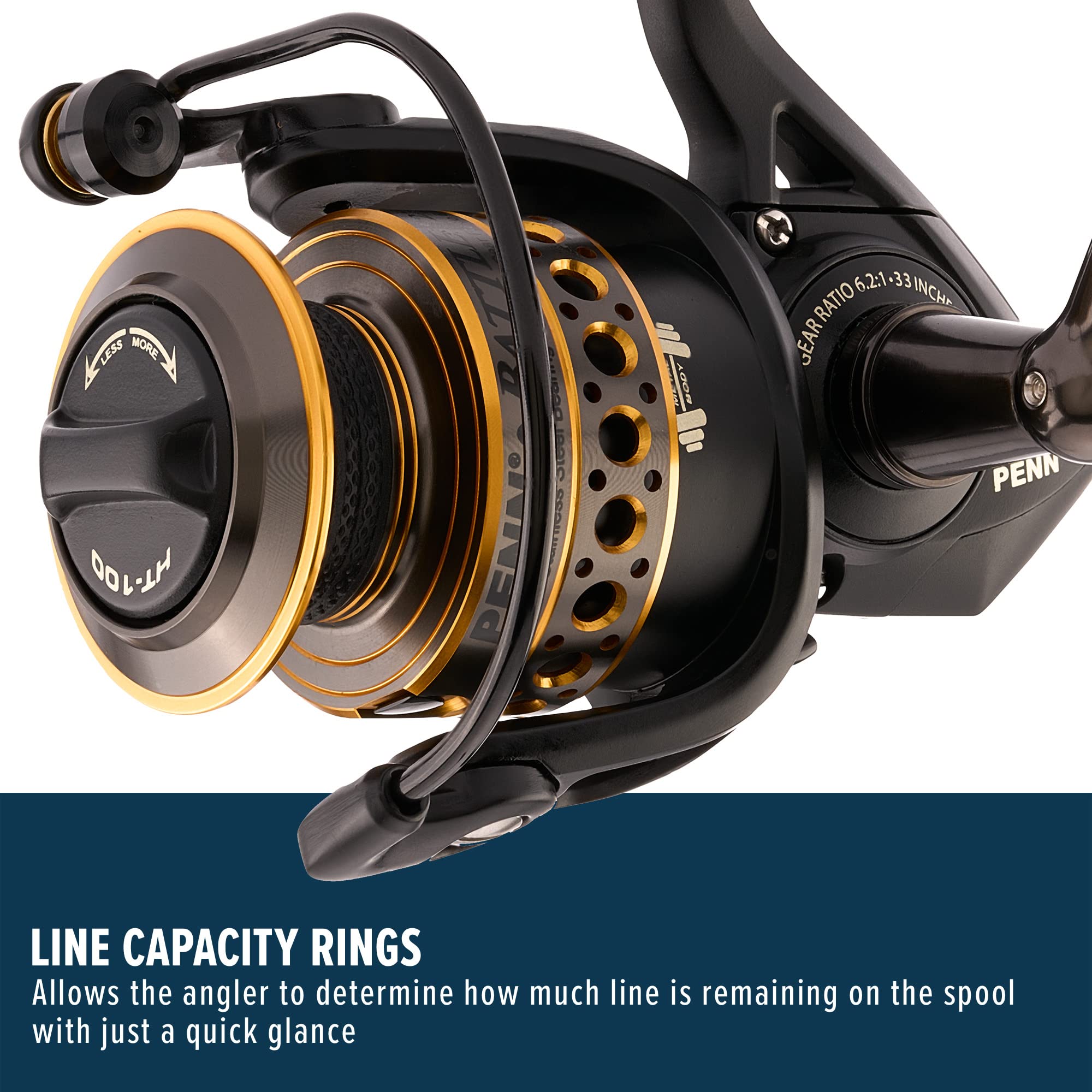 -Line capacity rings allow the angler to determine how much line is remaining on the spool with just a quick glance