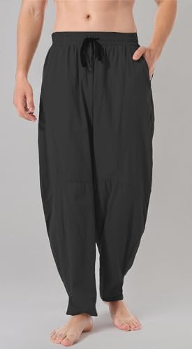 perdontoo Pantalones de verano para hombre de lino y algodón, holgados, informales, ligeros, con cintura elástica (3XL, negro) perdontoo Pantalones de verano para hombre de lino y algodón, holgados, informales, ligeros, con cintura elástica (3XL, negro)