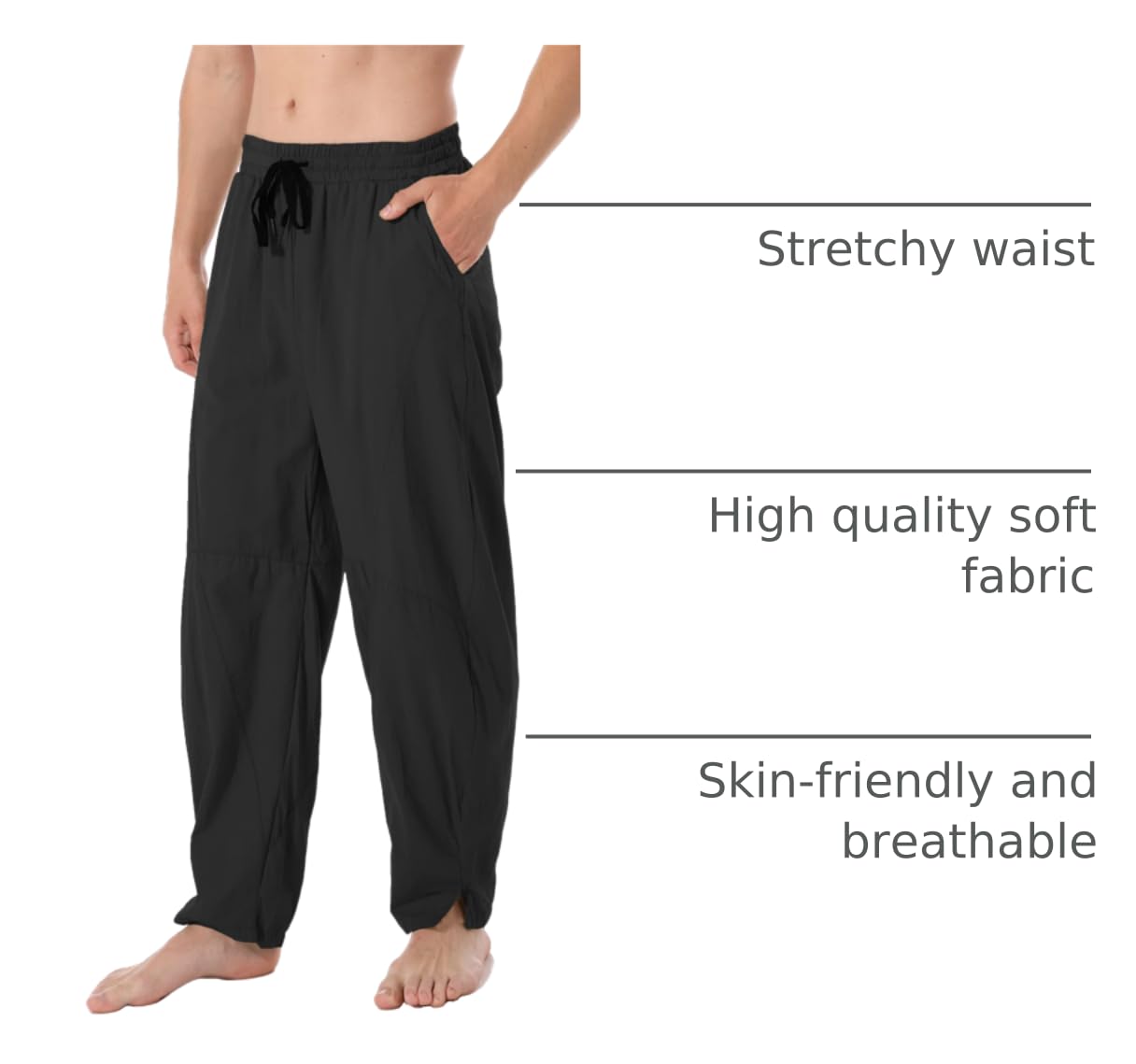 Description This men elastic waist drawstring pants made of skin-friendly soft and comfortable fabric, lightweight, breathable, keep you cool and relaxed all the time.