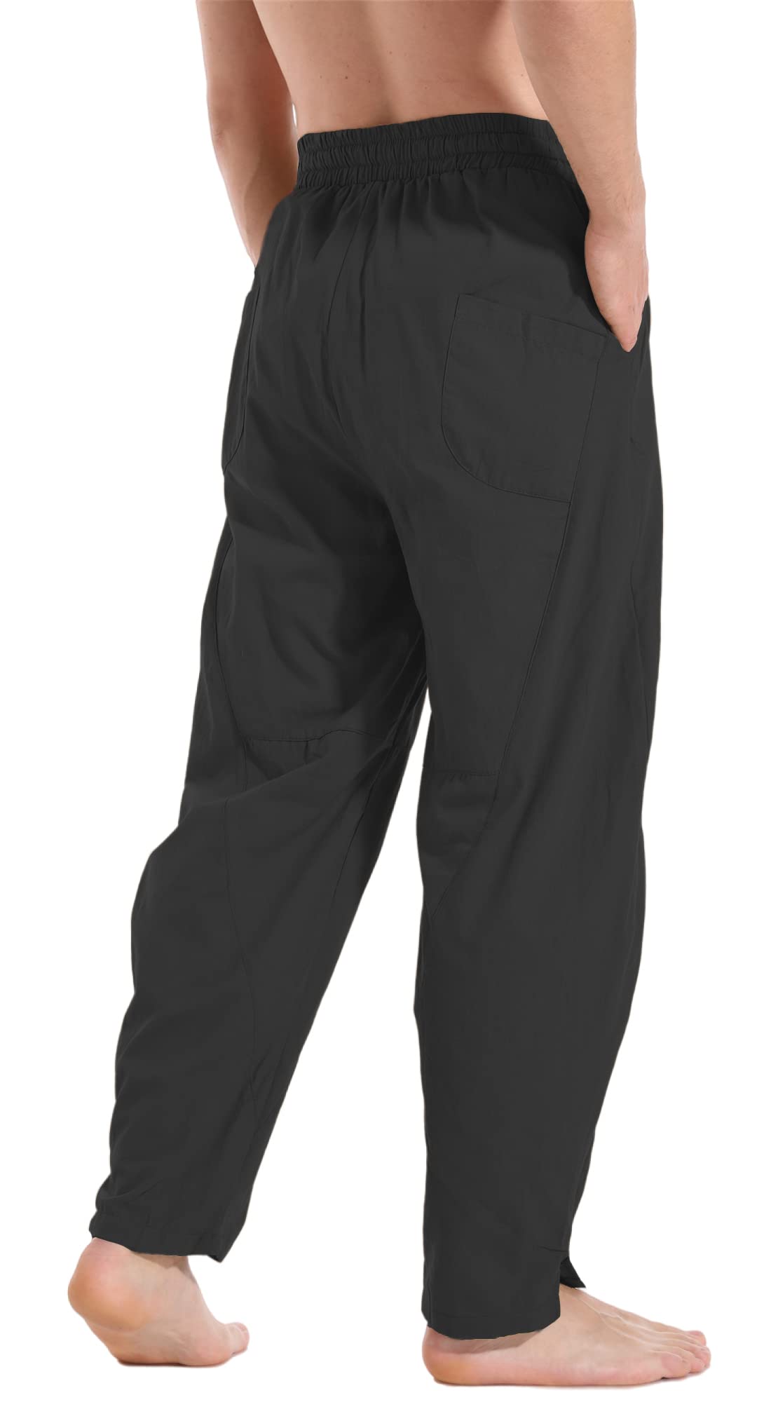 perdontoo Pantalones de verano para hombre de lino y algodón, holgados, informales, ligeros, con cintura elástica (3XL, negro)