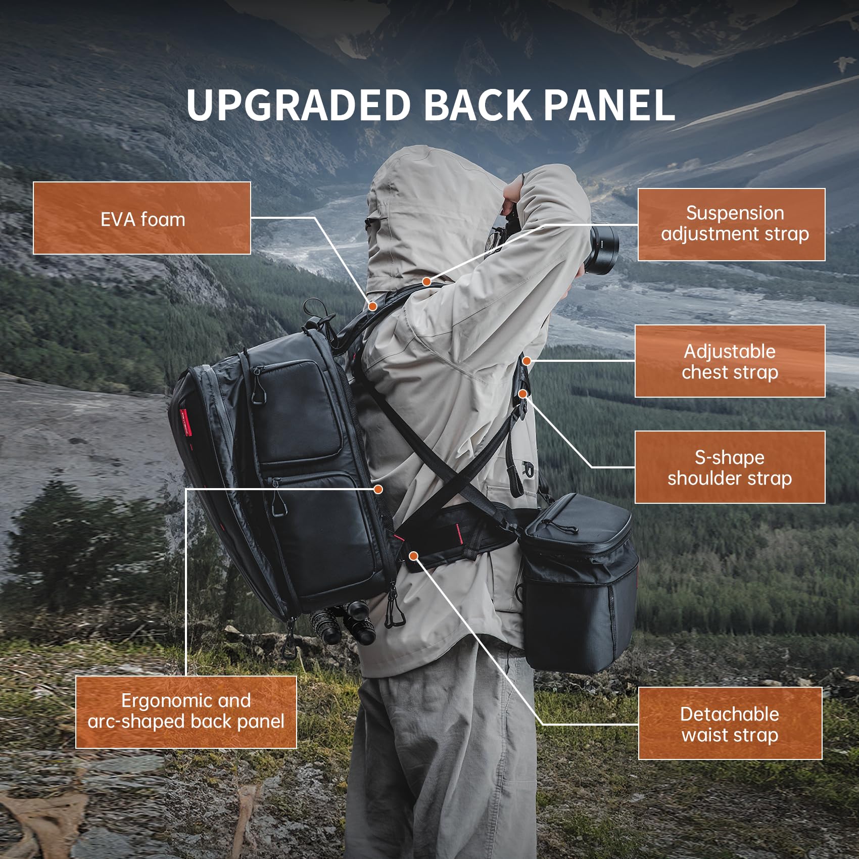 -【More Details】Neatly Stowed with multiple pockets for stuffs including Large Tripod; Laptop compartment; YKK Zippers of camera bag Keep Your Valuables Secure, etc. Check the Product Description for more details