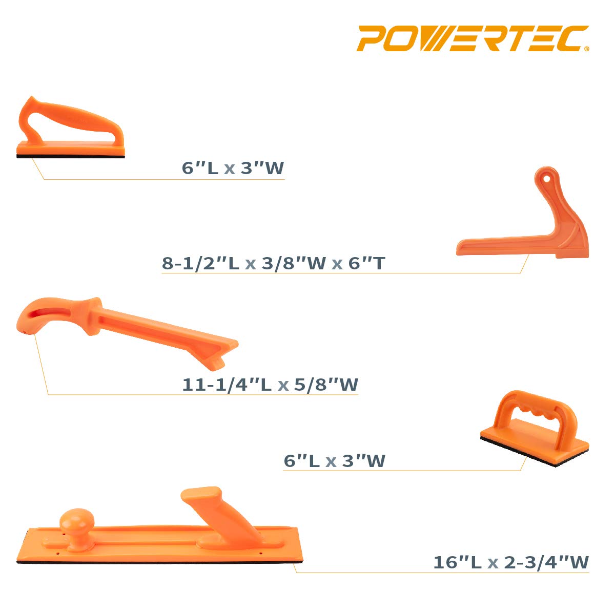 Introducing the Max Grip Push Block and Push Stick Set by POWERTEC. This well crafted and premium version safety orange push block & stick set includes 3 push blocks ( one long and two short ) and 2 push sticks ( one straight push stick and one v stick ). The push blocks ( often called push pads ) are essential for use on routers, jointers and table saws. The straight push stick is great for narrow stock or when space is limited. The V-shaped push stick ( sometimes called a V-type push stick or v-shaped putter ) is great when extruding, or needing to exert a more detailed control on your work piece, or if needing to get really close to the blade. Our exclusive woodworking push block and stick set is the perfect addition to any safety or woodworking tool set. Safety Through and Through Not only do they help keep your hands out of harms way, but they reduce the risk of kickback, often resulting in smoother cuts or general improvements in other applications, producing a more efficient and professional looking finish no matter how small or large the work. But essentially, they are used to help maintain a firm and consistent downward pressure on your stock or a more controlled ride through the cutting blade. Simple and Effective Use When the blocks are used at the leading end of your work-piece, these powerful, yet simplistic safety tools boast an impressive grip strength using it’s natural slip resistant friction pads, and help prevent scratching. The sticks make it so much easier to push your stock safely through the blades from the rear when that direction of control is called for. They’ll make it much easier to hold and grip as you guide/push wood through the cutting blade, whatever your desired application.
