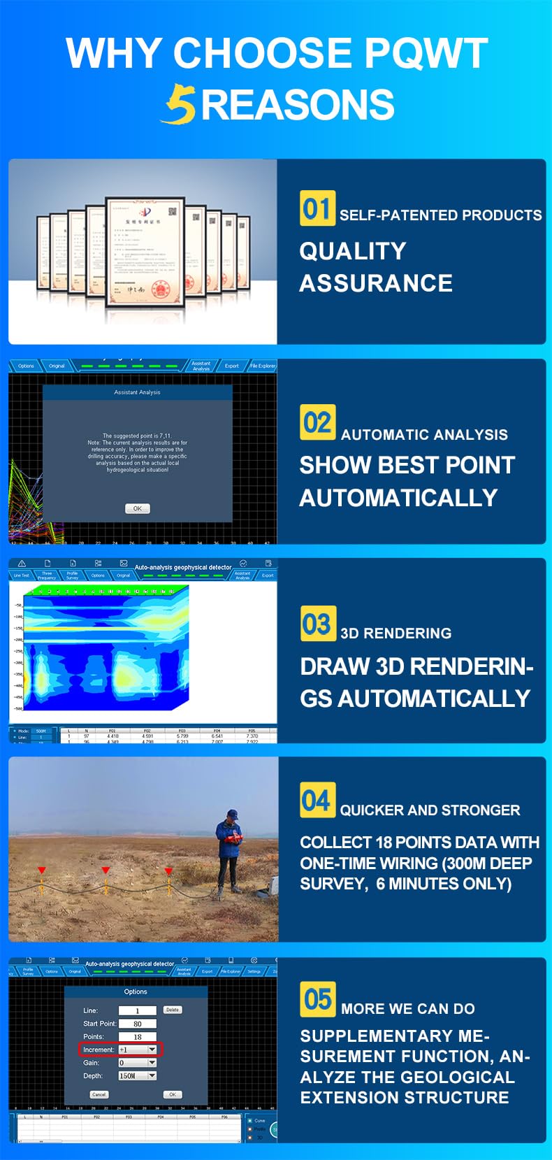 -Flexible Supplementary Measurement: Extend geological structure analysis by easily conducting supplementary measurements at both ends of the survey line, providing a comprehensive underground assessment.