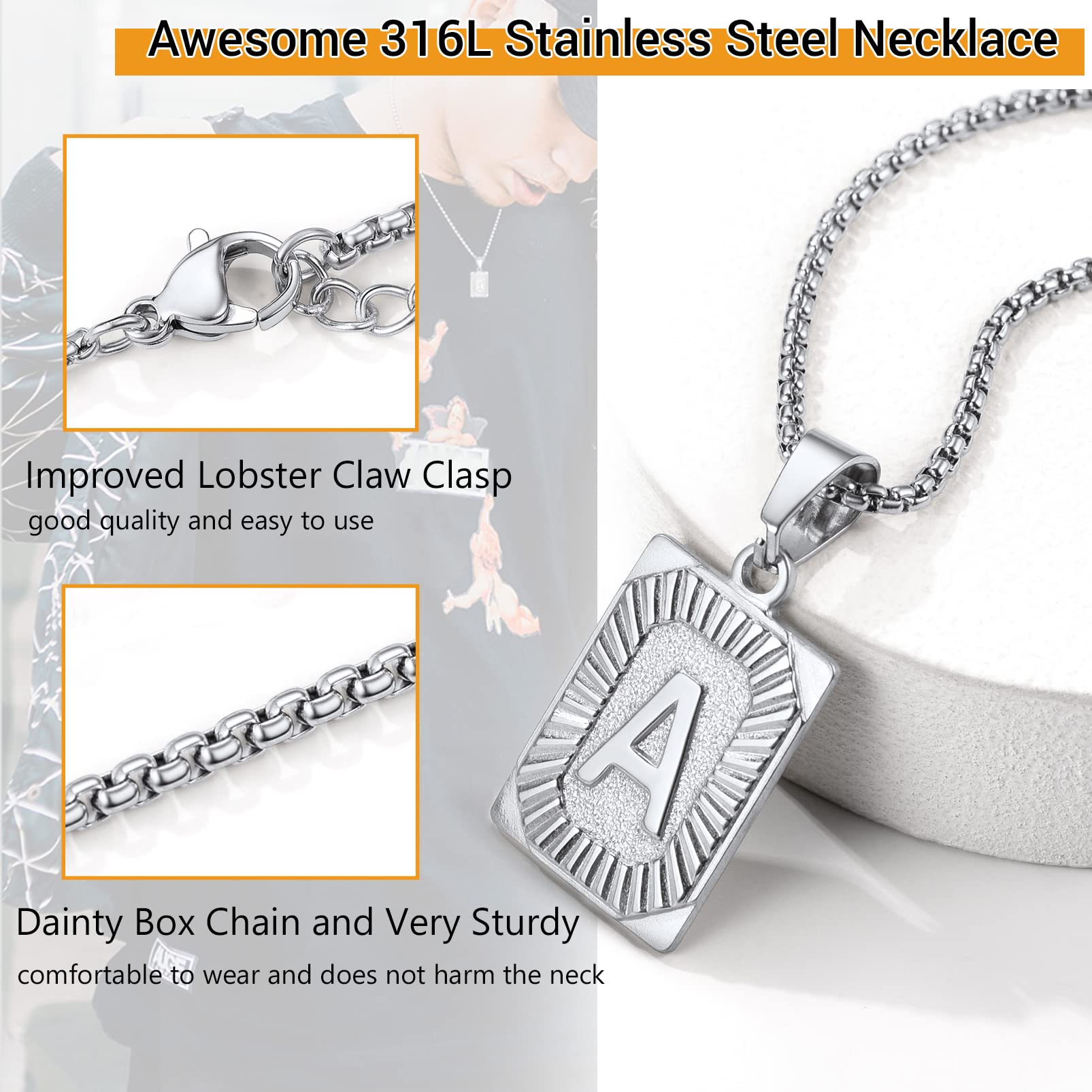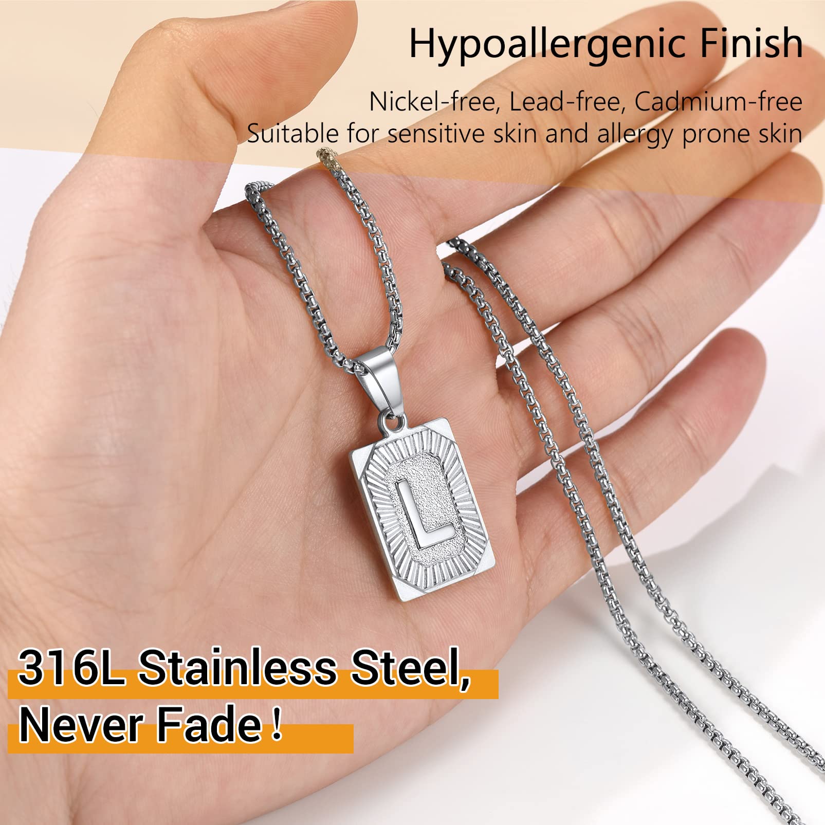 PROSTEEL L inicial letra colgante grabado collar cuadrado caja cadena hombres mujeres joyería de acero inoxidable