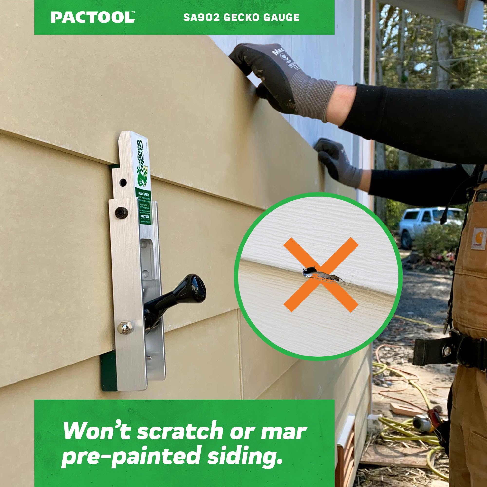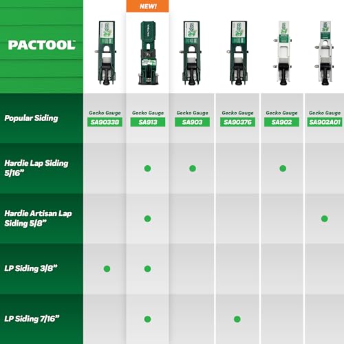 Product Description Crush your next commercial siding project with our PacTool SA902 Gecko Gauge Fiber Cement Siding Tool, ideal for one-person installation, and helps to decrease labor time. This is a must-have for any tool kit for home. Your next shingle job will be more manageable and productive with our efficient clamping tool that supports and gauges cement-board siding application by acting as a second pair of hands. This allows your siding to be level and adequately spaced while working your way up the wall, essentially eliminating the need for any layout. It is adjustable for 5”, 6”, 7”, and 8” siding reveals. This gauge has a patented friction cam mechanism that powerfully holds a 12-foot piece of fiber cement siding for hands-free nailing and is constructed from an extra durable aluminum. At PacTool, we are known for our outstanding line of exterior products in the construction, renovation, and remodeling sector and take pride in providing exceptional solutions that help to reduce fatigue and frustration for craftspeople, artisans, and DIYers. From the Manufacturer Save time and money installing fiber-cement siding with the Gecko Gauge. Using the handy siding gauge, one person can install siding quickly while ensuring each course stays level. It will help you produce a consistent siding reveal and reduce the need fo