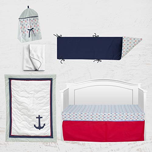 Pam Grace Creations - Juego de cama para cuna Anchors Away, 6 piezas, azul / rojo, juego de cama para bebé