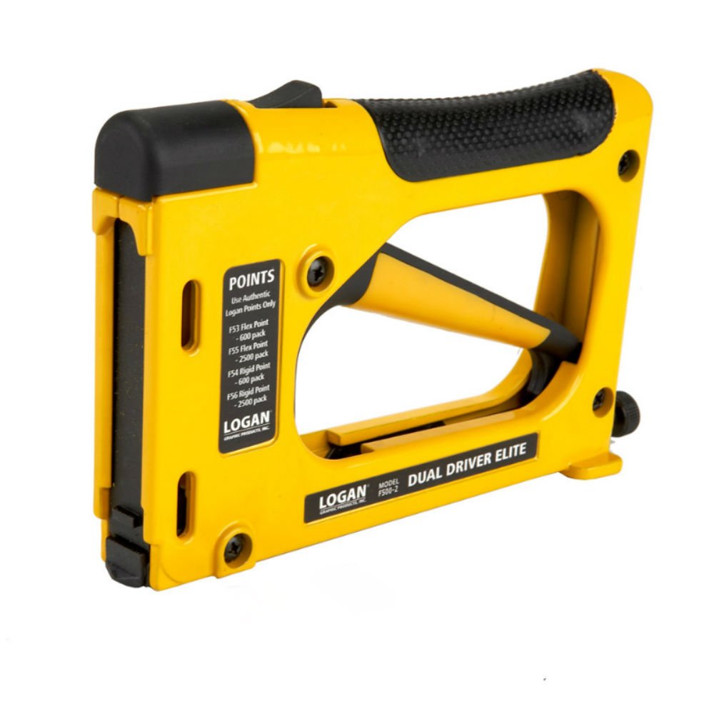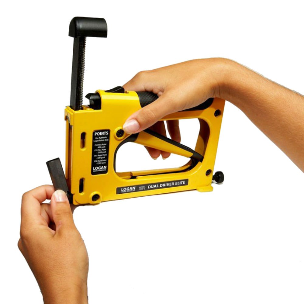 Dual drive elite represents the next step in easy-to-use, efficient picture framing point driving tools. This improved model works with both flexible and rigid points and provides stronger downward point pressure on materials. The handle has a comfort rubber grip and has been redesigned to need 50 percent less grip force to drive the point. Includes 1 point driver, 50 flexible points, 50 rigid points and instructions. Uses points F53, F54, F55 and F56 refills. The flexible points can be bent back after being inserted into the frame for easy changing of frame contents. Fits Logan dual driver models F500-1, F500-2.
