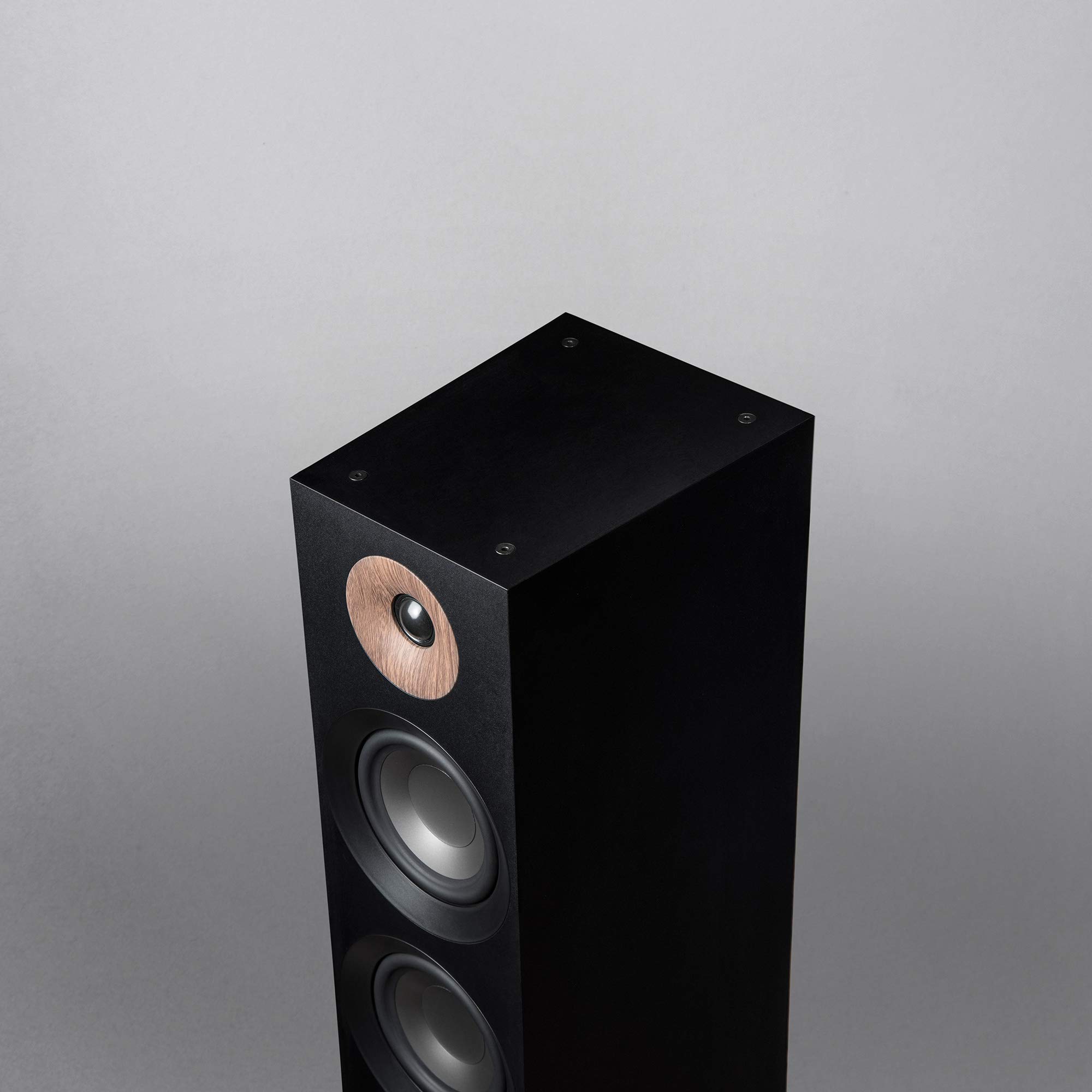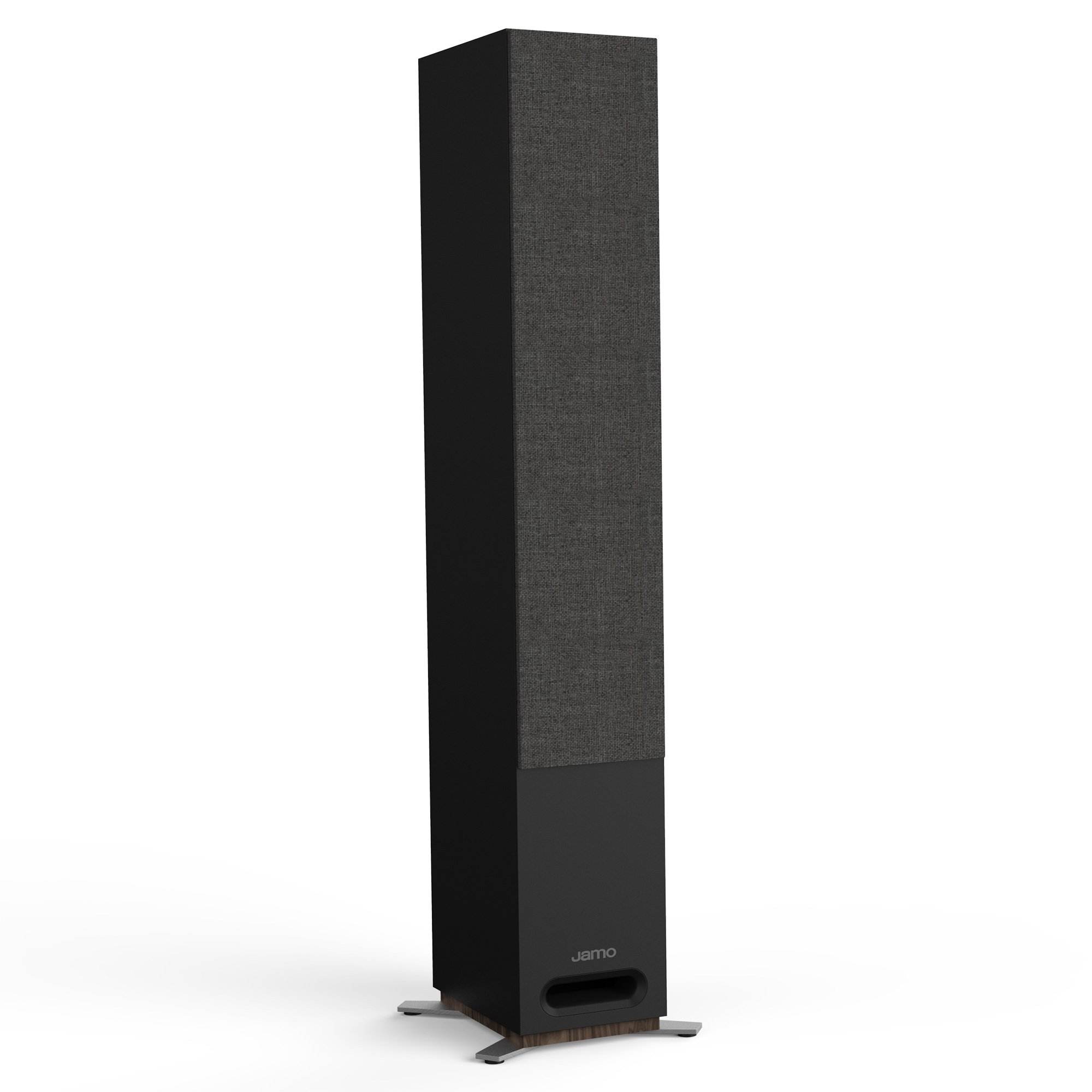 The S 809 is our Jamo flagship Dolby Atmos tower speaker. Three impressive 127mm (5") aluminized polyfiber woofers and a 25mm (1") soft dome tweeter deliver an amazing acoustic performance. Each speaker includes a patent-pending connection points atop the cabinet for seamless integration of the S 8 ATM topper to deliver the overhead effect of Dolby Atmos. Premium performance The 1" Soft dome tweeter provides smooth, refined high frequencies, with three 5" Aluminized polyfiber woofers for balanced, cinematic low end. The integrated waveguide focuses the high frequency sound for dynamic, true-to-life reproduction, while the front-firing tube port allows for better low frequency extension with placement flexibility. Seamless Dolby Atmos integration elegant metal fasteners atop the cabinet provide a chic, modern industrial look, but also serve as a connection point for the S 8 ATM Dolby Atmos Elevation speaker. This patent-pending design allows for all of the wire connections on the back of the floorstander, avoiding unsightly and messy speaker wire going all the way up to the Atmos module - For cinematic, completely immersive Dolby Atmos sound while preserving the beautiful aesthetic of the Jamo Studio 8 Series. More bass + less space Front firing tube port improves low frequency extension while maximizing placement options. Specifications Frequency response 37Hz - 26Khz (+/- 3dB) sensitivity 90dB (2.83V @ 1M) power handling 120W/ 240W impedance 8 Ohm high frequency driver 25mm (1") soft dome tweeter low frequency driver 3 x 127mm (5") POLYFIBER woofers speaker enclosure MDF enclosure Type bass reflex via front firing slot port inputs single binding posts (main/ height) Dimensions 1042mm x 191mm x 252mm 8.70" X 6.5" X 10.25".