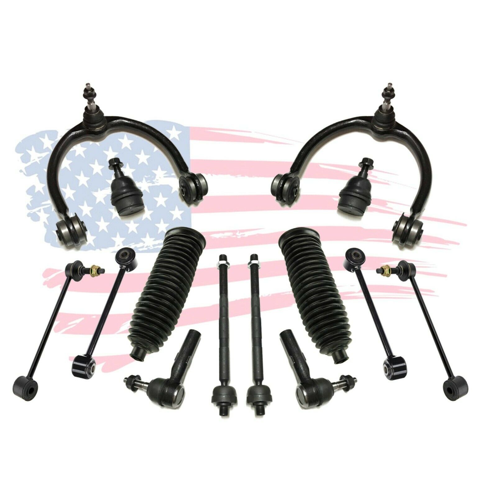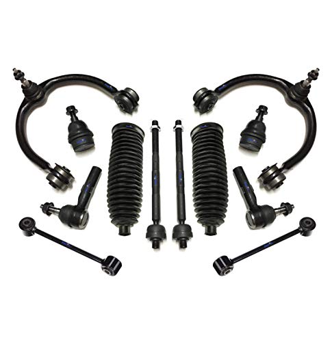 Kit de suspensión de 12 piezas Brazos de control superiores y juntas de bola Juntas de bola inferiores Eslabones de extremo de barra estabilizadora Extremos de barra de unión interior y exterior Botas de fuelle de piñón y cremallera