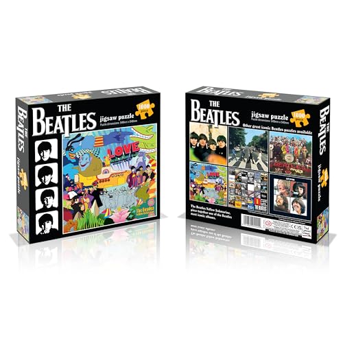 Product Description The fantastic 1,000 piece jigsaw puzzle featuring colourful illustrations of the heroes and villains from The Beatles Yellow Submarine film is a must for any Beatles fan! The Beatles are one of the most commercially successful and critically acclaimed bands in the history of popular music. The finished jigsaw measures 480mm x 680mm and is suitable for 12 years and over. Set Contains: 1000 pieces puzzle