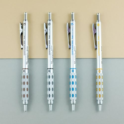 Product Description The Pentel GraphGear 1000 mechanical pencil is a superior drafting pencil for architects, draftsmen, artists and enthusiasts. The 4mm tip design makes it ideal for use with rulers and templates. A unique, dual-action retractor advances and retracts the pencil tip to protect lead from breaking. The built-in lead hardness indicator allows you to easily identify your lead type. It comes pre-loaded with Super Hi-Polymer HB lead, which never needs sharpening and produces a clear dark line. The finely chiseled metallic grip inlaid with soft, latex-free pads makes extended writing and drawing comfortable. It is backed by Pentel’s Limited Lifetime Warranty.Refillable with Pentel Super Hi-Polymer Lead and Z2-1N refill eraser. From the Manufacturer Click the automatic drafting pencil top to reveal an extra-long 4mm fixed sleeve. Click the pocket clip to release the heavy spring mechanism and retract the tip. Finely chiseled metallic grip is inlaid with soft rubber pads to cushion fingertips. Automatic pencil is refillable with Pentel's Super Hi-Polymer Lead and Z21 refill eraser.